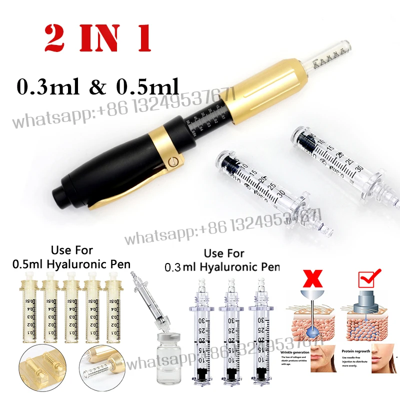 2 в 1 мезо инъекции пистолет гиалуроновая ручка 0,3 мл и 0,5 мл головка золото гиалурониковая кислота ручка губ наполнитель инжектор неинвазивный небулайзер