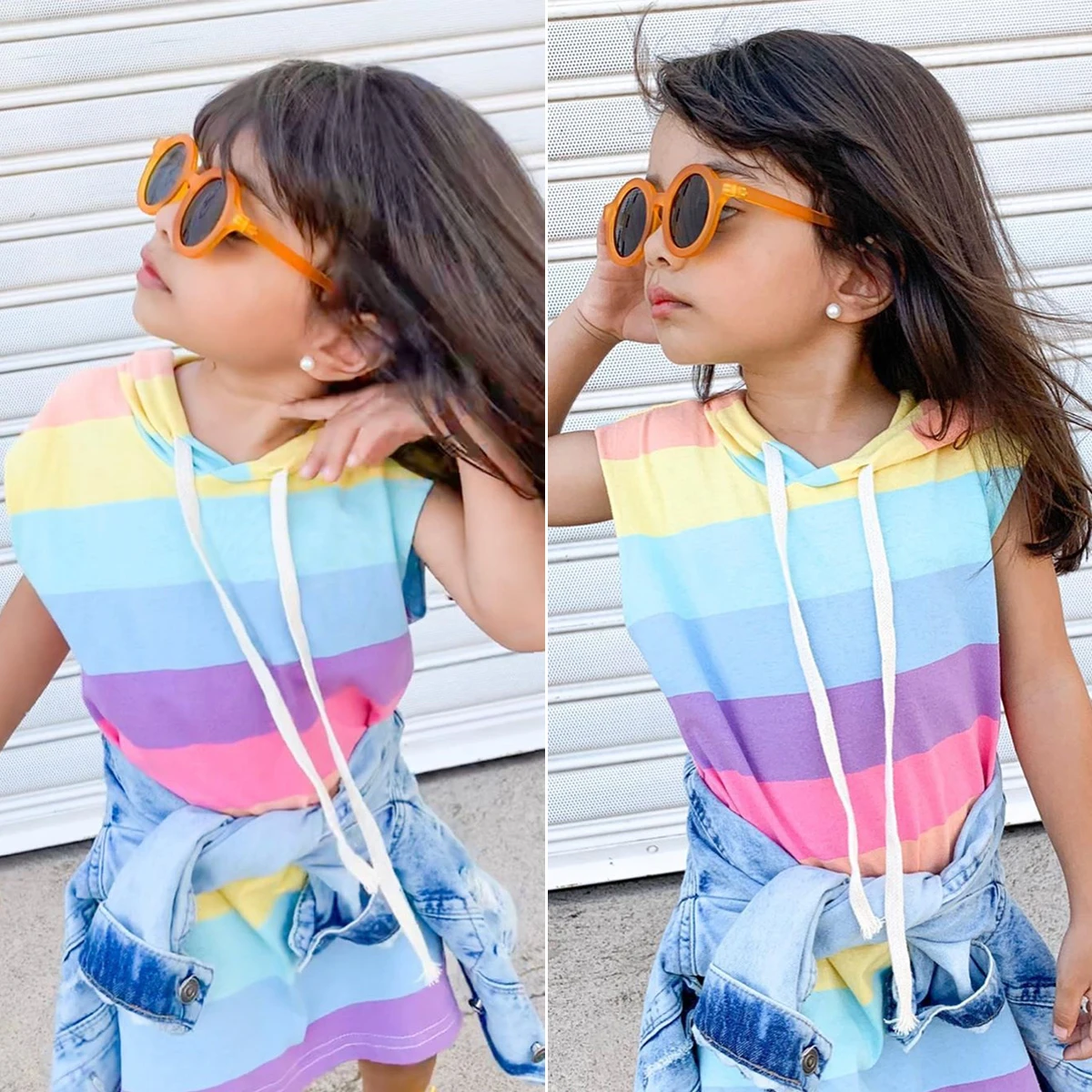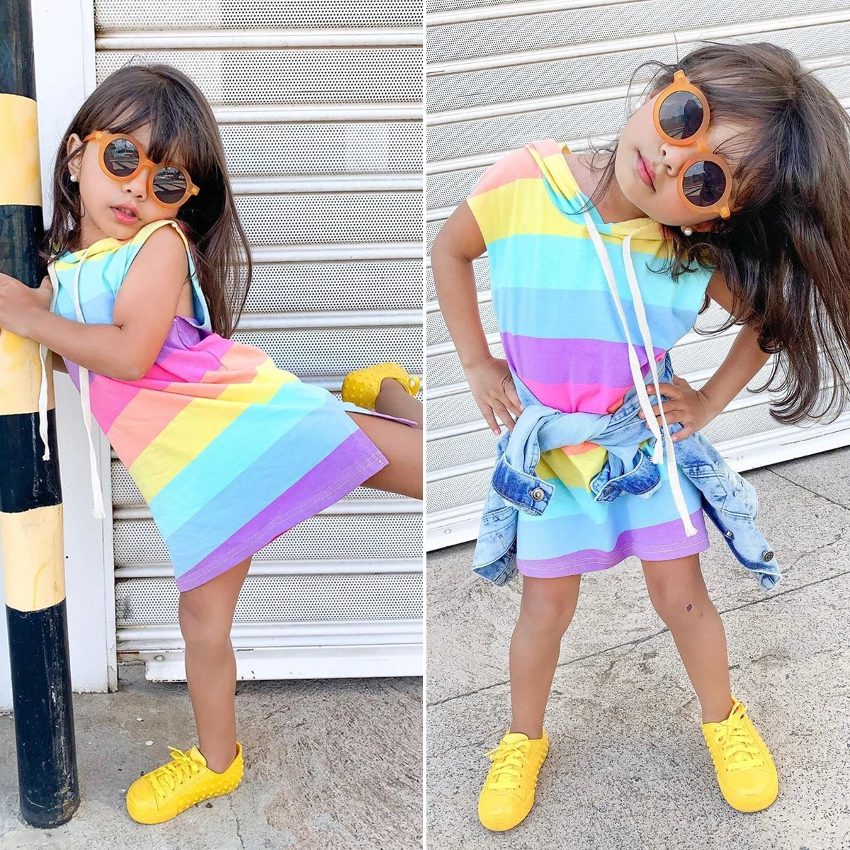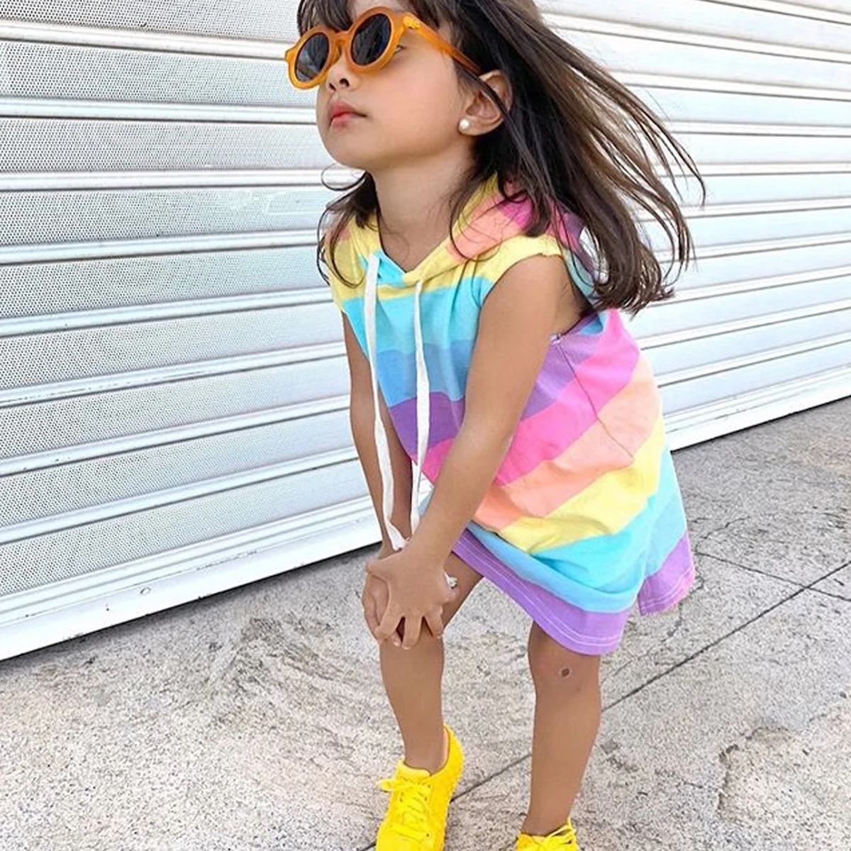 От 1 до 7 лет милое летнее платье для девочек детская одежда платье с радугой для маленьких платья без рукавов для детей, платье с воланом внизу покроя одежда с узорами летнее платье на каждый день для девочек