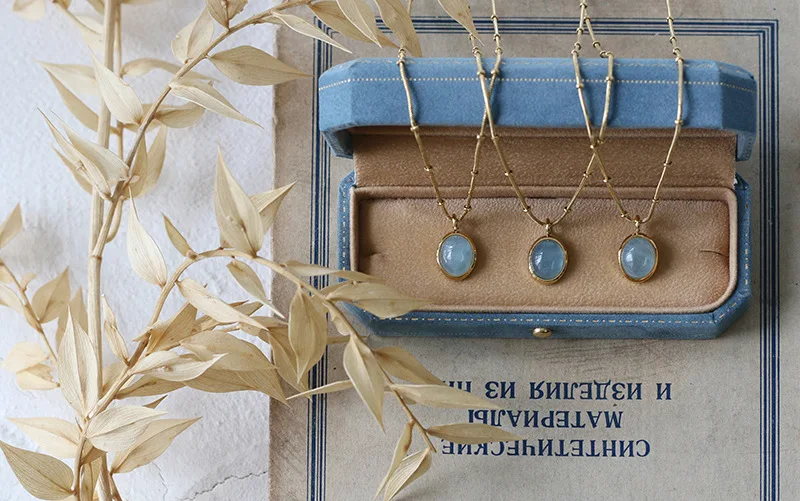 Ожерелья женские из титановой стали, с натуральным камнем, на цепочке до ключиц, винтажные ювелирные украшения, аквамариновые ожерелья