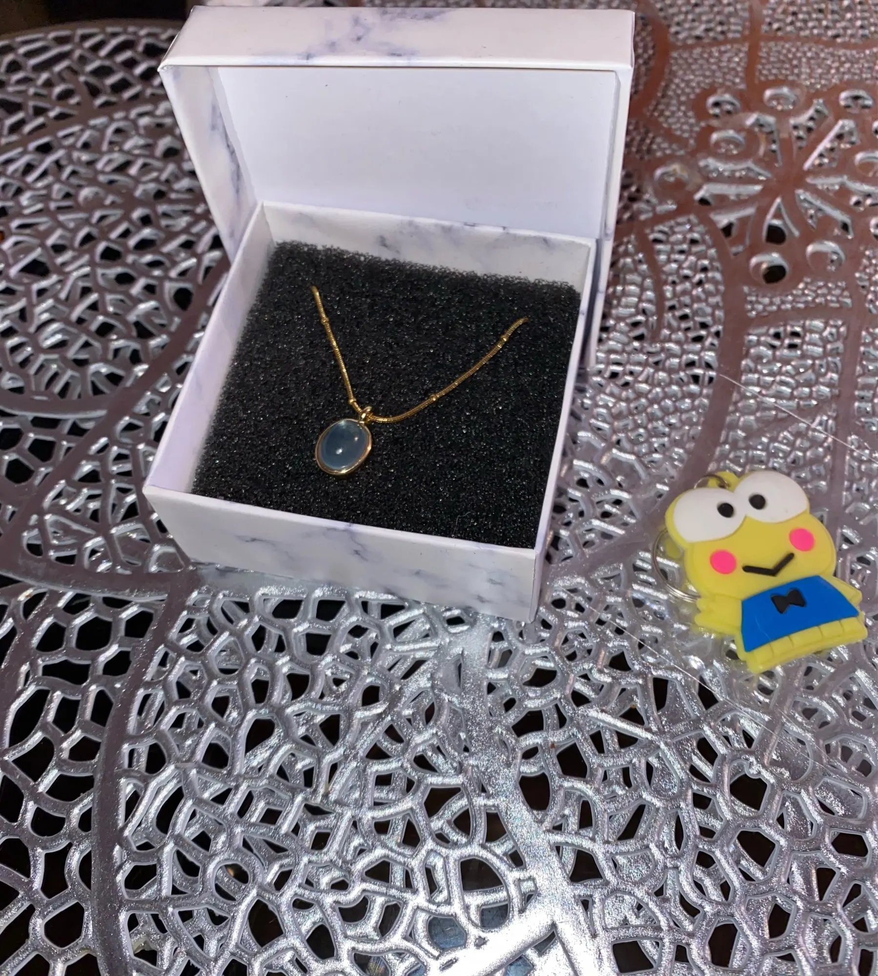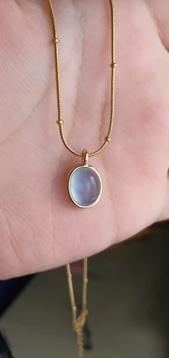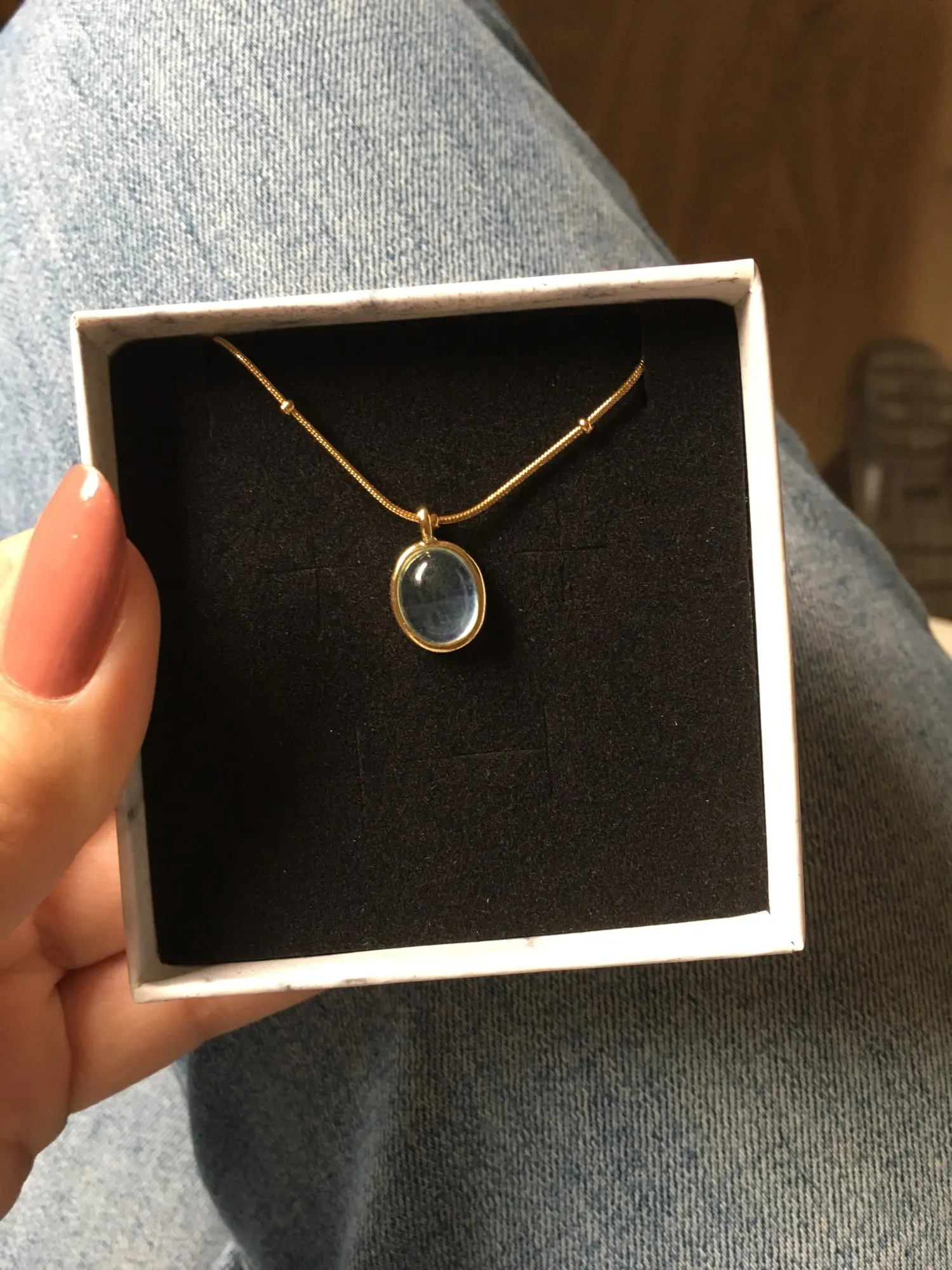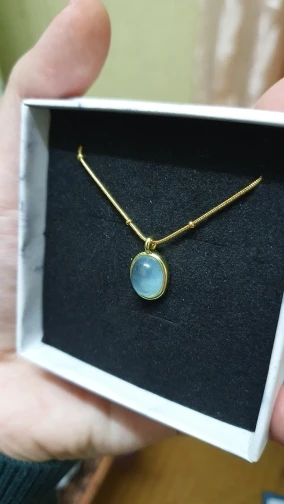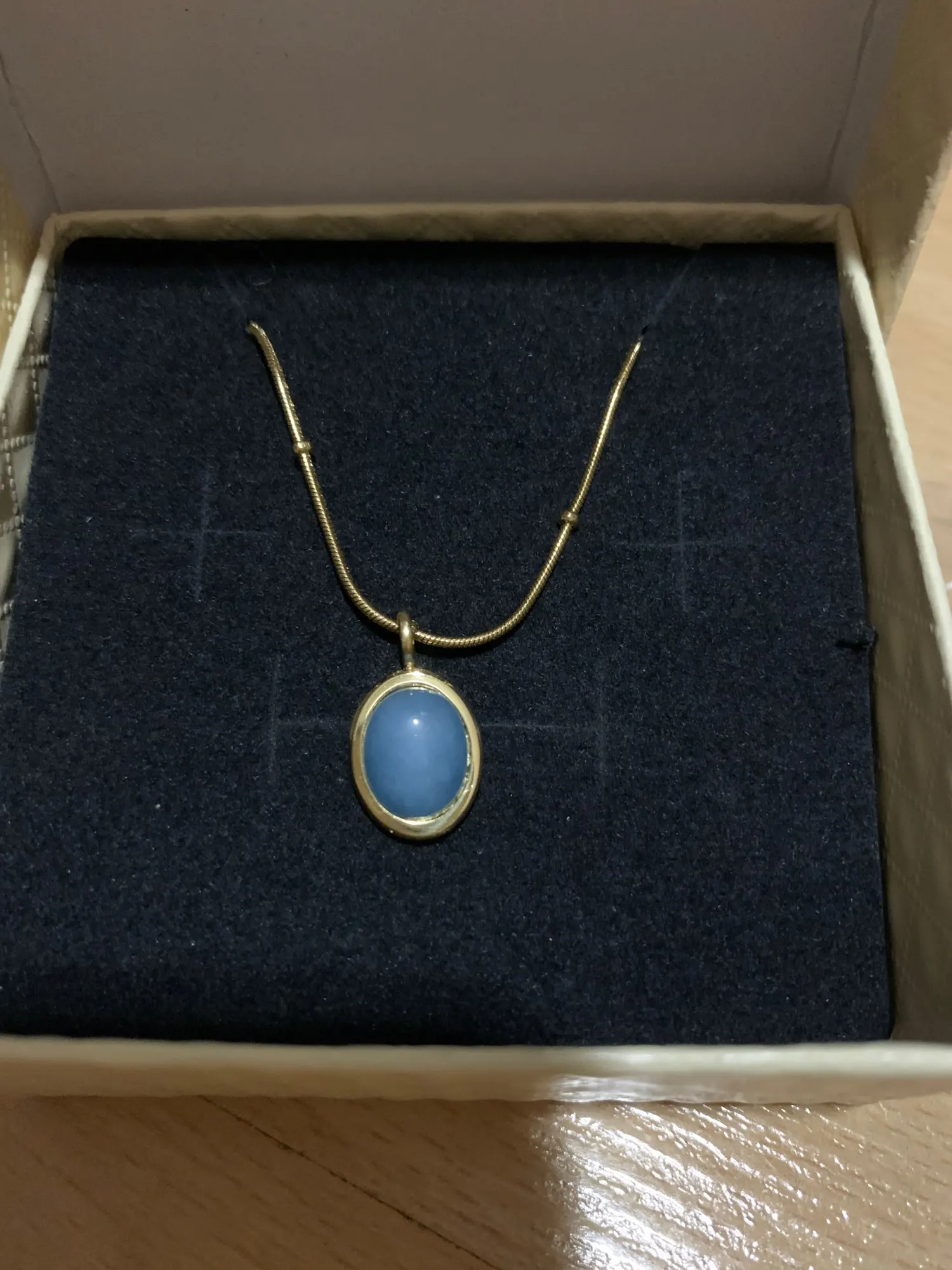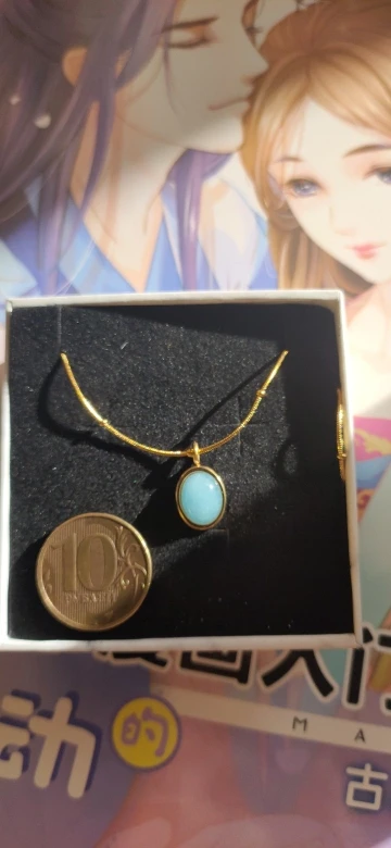 Мне очень нравится это ожерелье. Камень очень красивый, синий, чистый и прозрачный, цепочка очень тонкая. Продавец сказал, что цепь может работать более 2 лет, не выцветая. Я очень доволен этим моментом. Я думаю, что это стоит своей цены. Продавец кладет ожерелье в ювелирную коробку с брелоком в подарок. Я настоятельно рекомендую этого продавца.