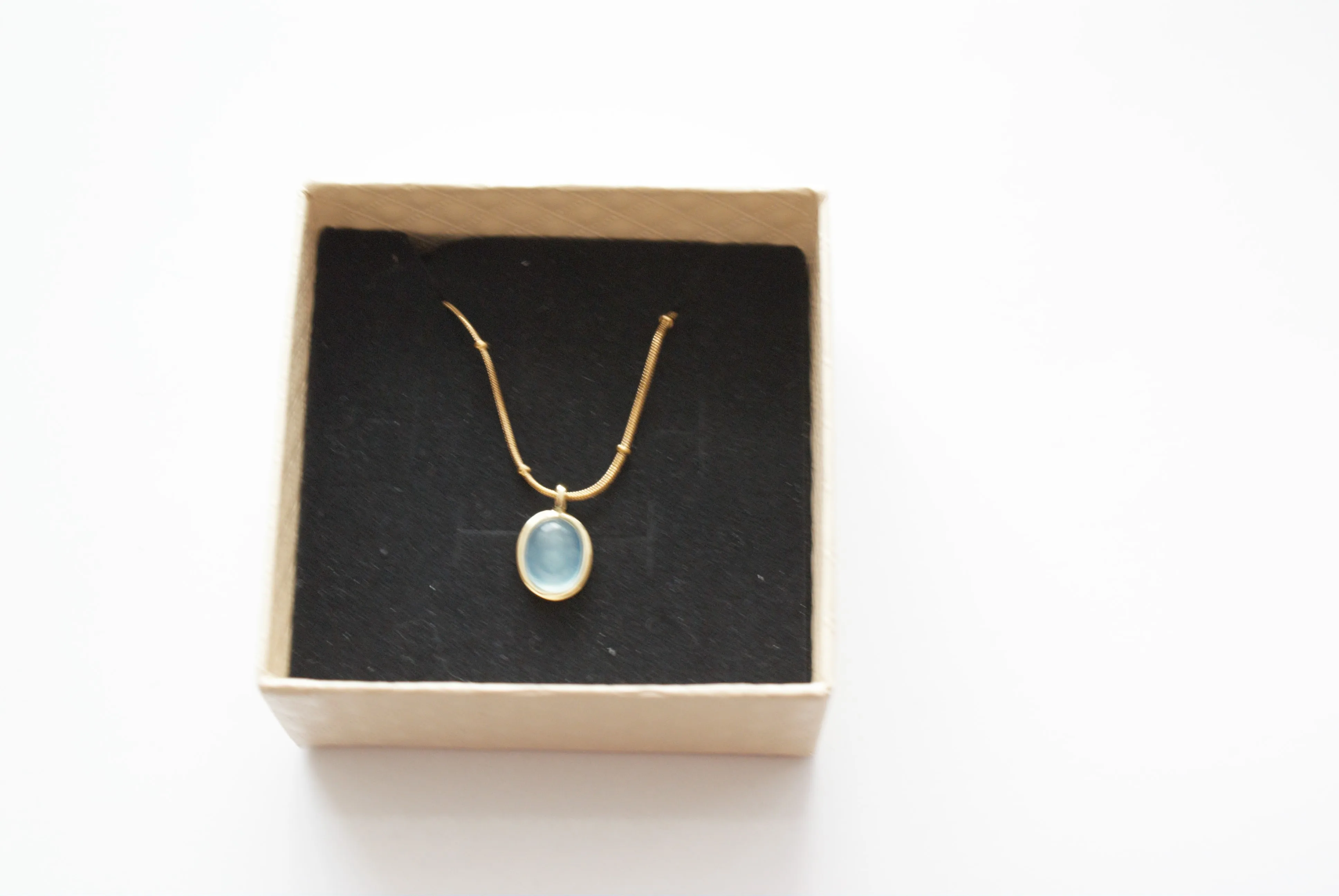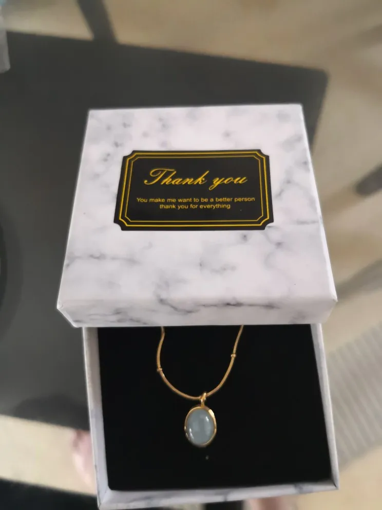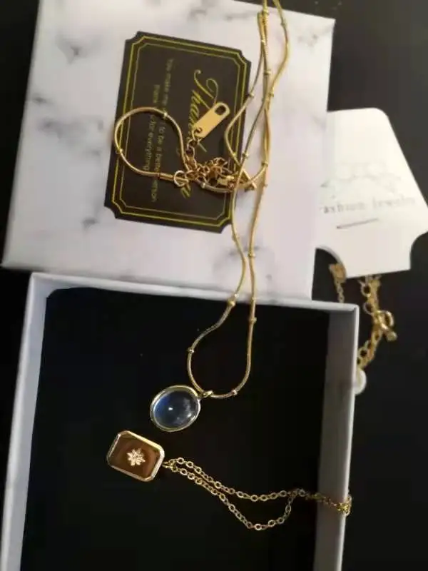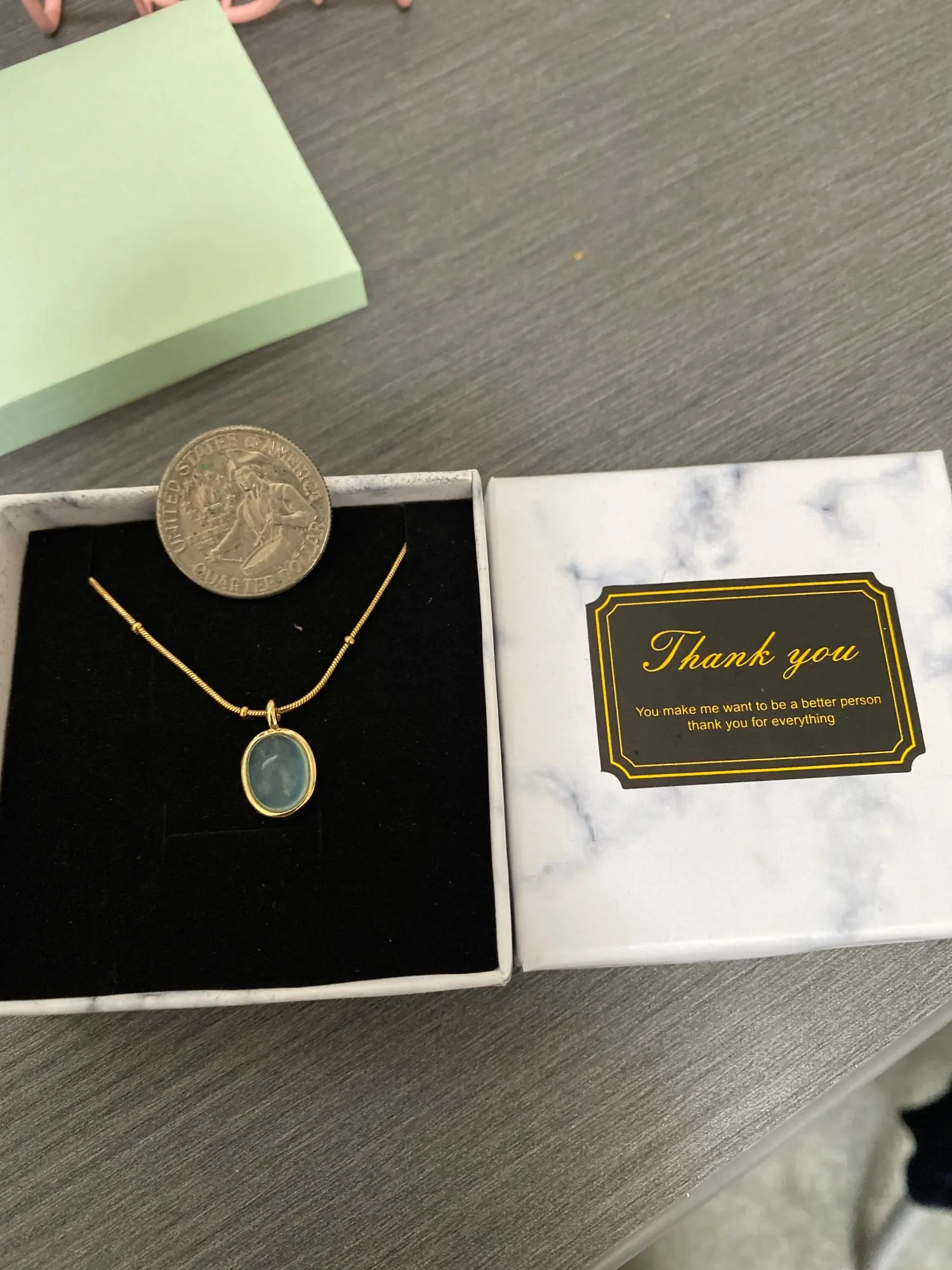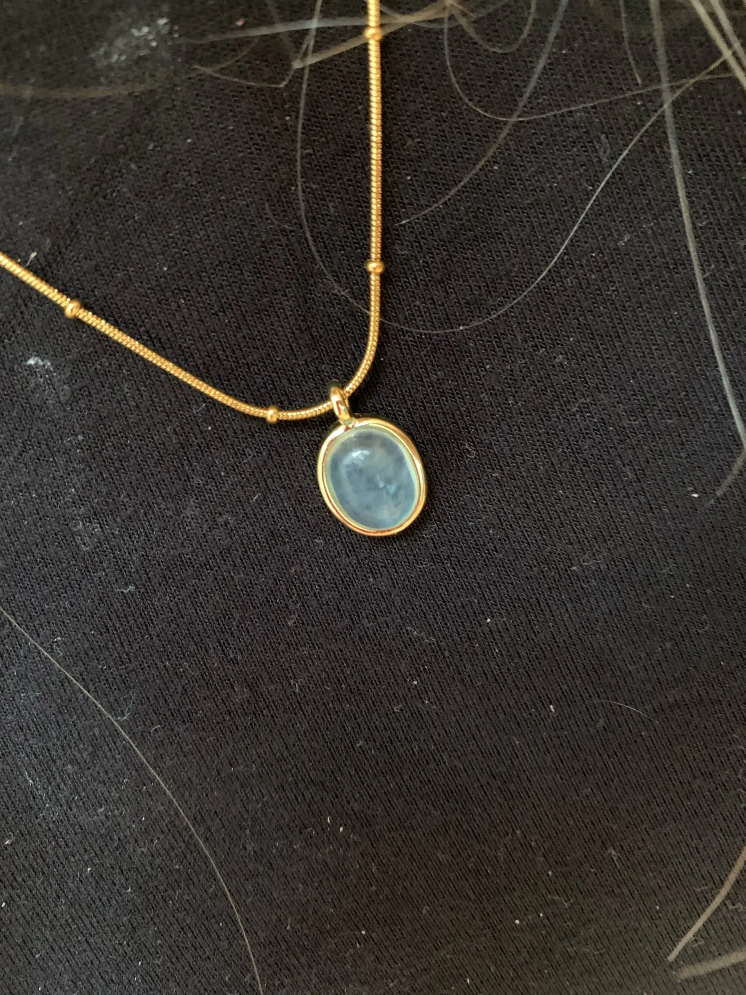 Мне очень нравится это ожерелье. Камень очень красивый, синий, чистый и прозрачный, цепочка очень тонкая. Продавец сказал, что цепь может работать более 2 лет, не выцветая. Я очень доволен этим моментом. Я думаю, что это стоит своей цены. Продавец кладет ожерелье в ювелирную коробку с брелоком в подарок. Я настоятельно рекомендую этого продавца.