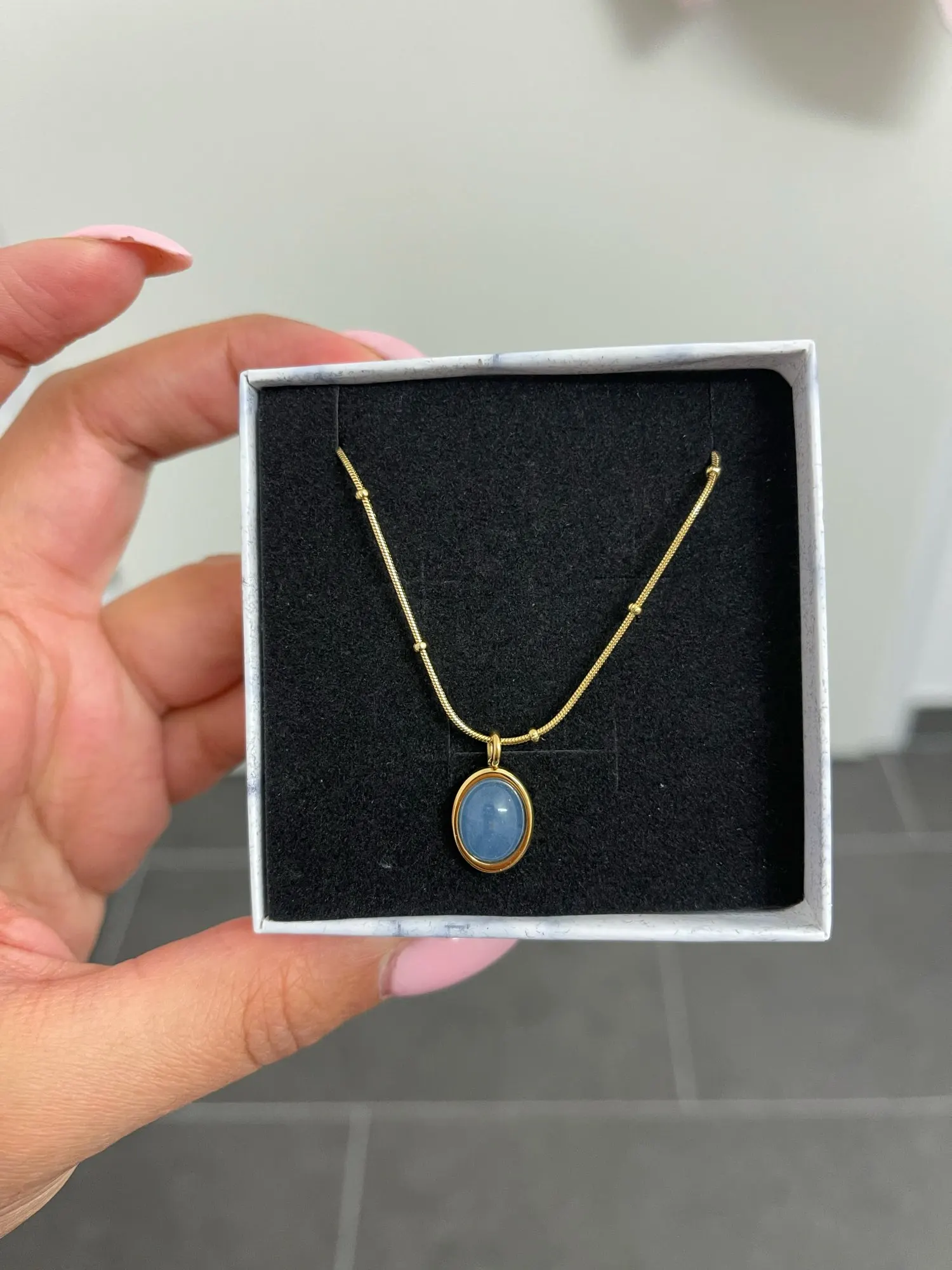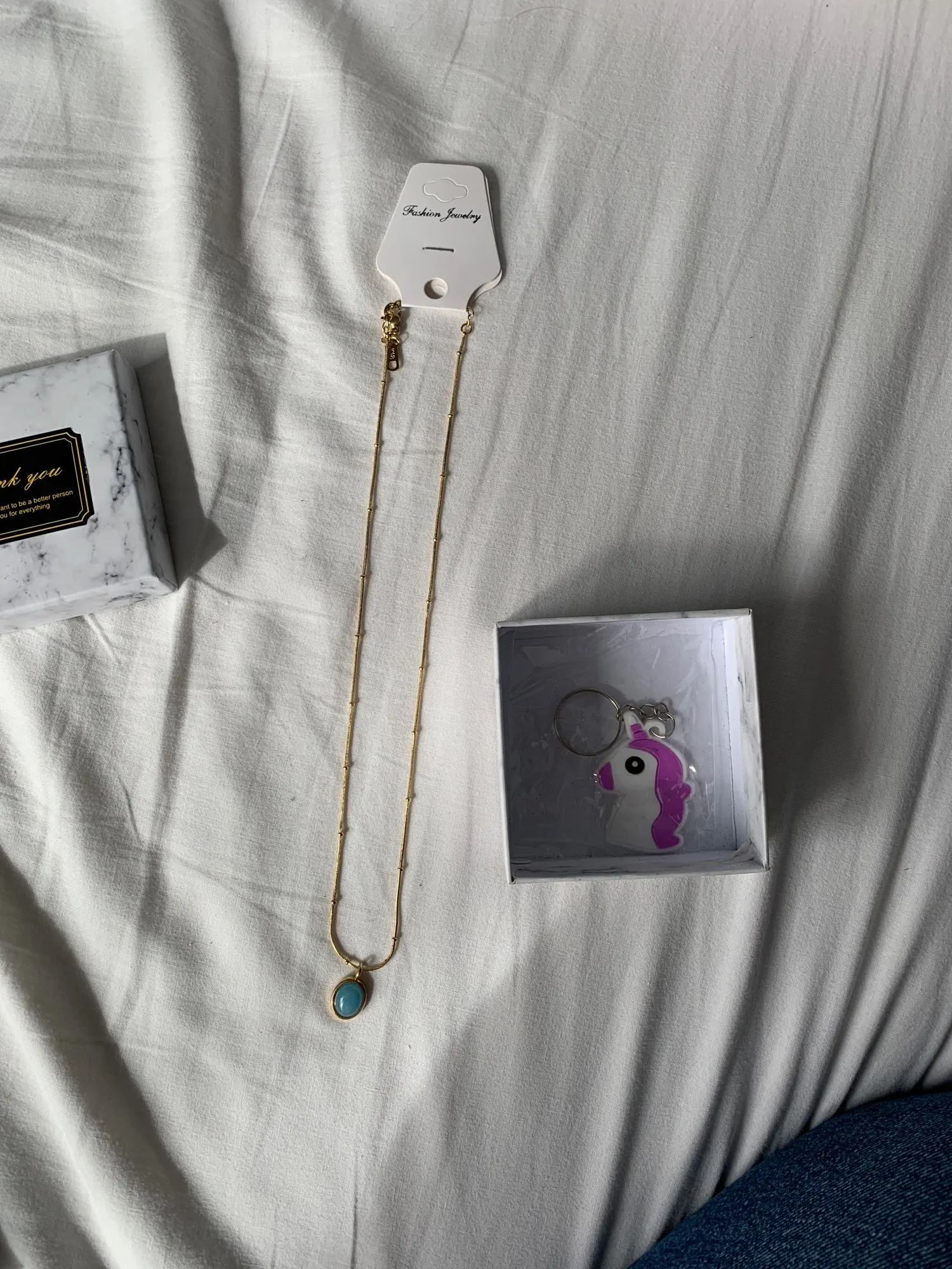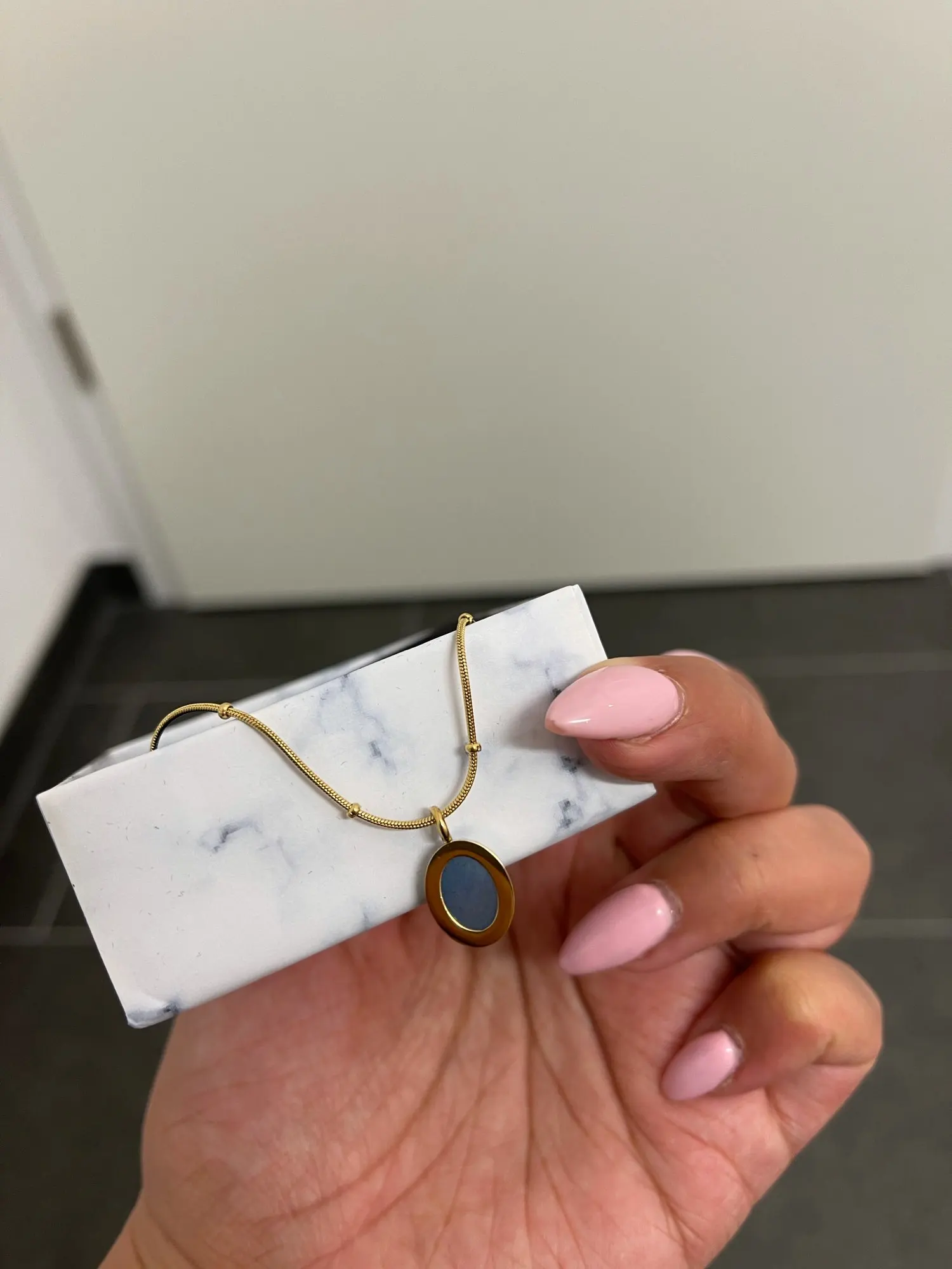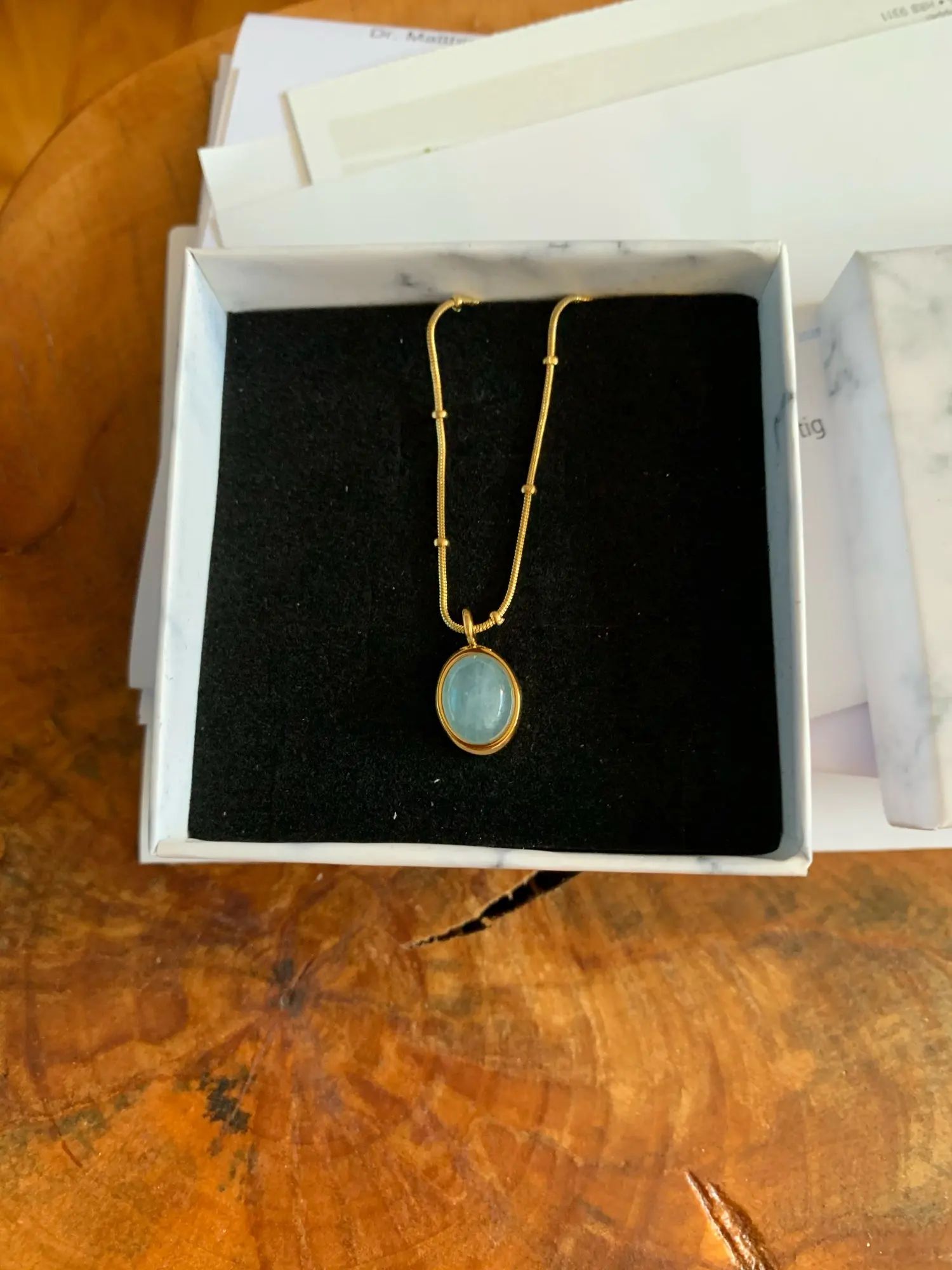 Мне очень нравится это ожерелье. Камень очень красивый, синий, чистый и прозрачный, цепочка очень тонкая. Продавец сказал, что цепь может работать более 2 лет, не выцветая. Я очень доволен этим моментом. Я думаю, что это стоит своей цены. Продавец кладет ожерелье в ювелирную коробку с брелоком в подарок. Я настоятельно рекомендую этого продавца.