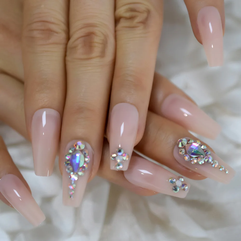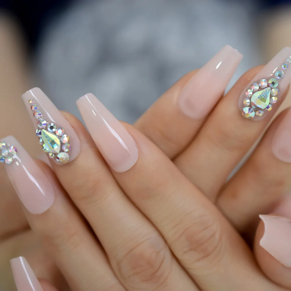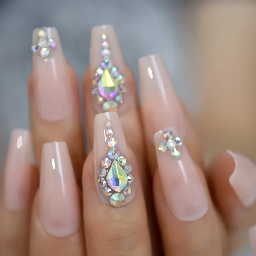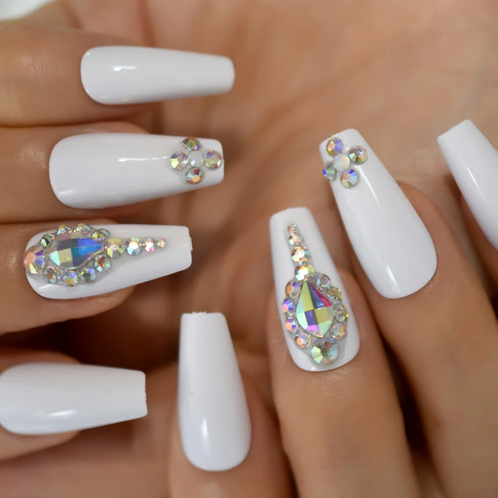 Салон идеальные искусственные ногти 3D Стразы декоративные белые обнаженные искусственные ногти длинные балерины трапециевидные Типсы