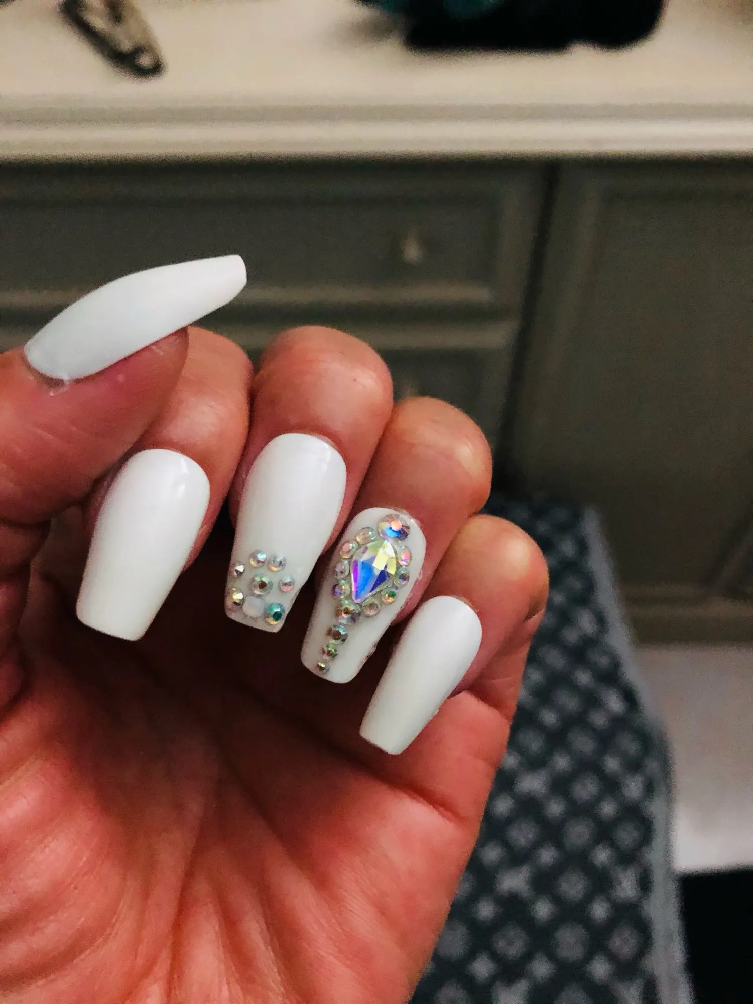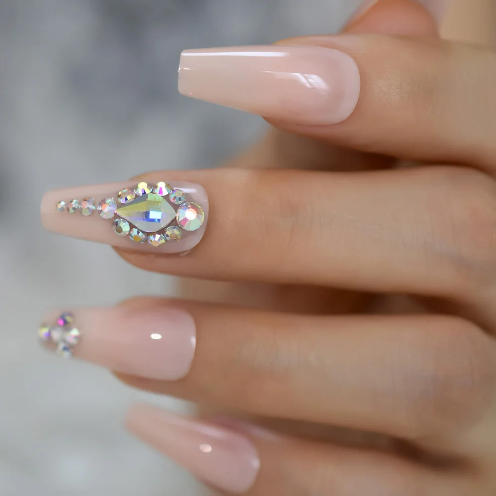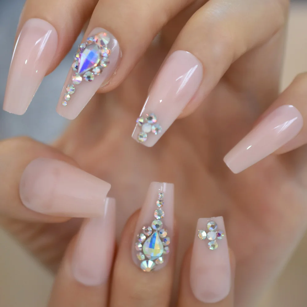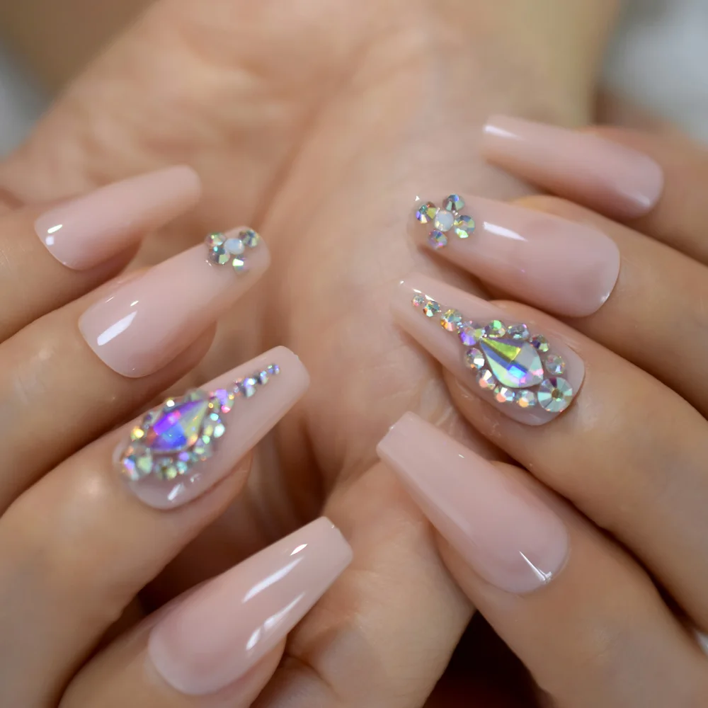 Салон идеальные искусственные ногти 3D Стразы декоративные белые обнаженные искусственные ногти длинные балерины трапециевидные Типсы