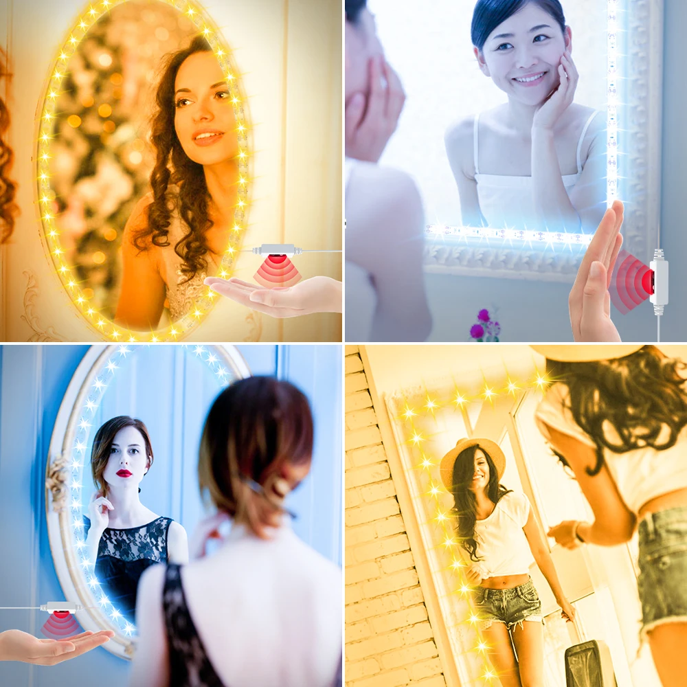 Голливудская светодиодный ная лампа 5 в с датчиком движения рук, лампа для спальни 0,5, 1, 2, 3, 4, 5 м, водонепроницаемая зеркальная лампа