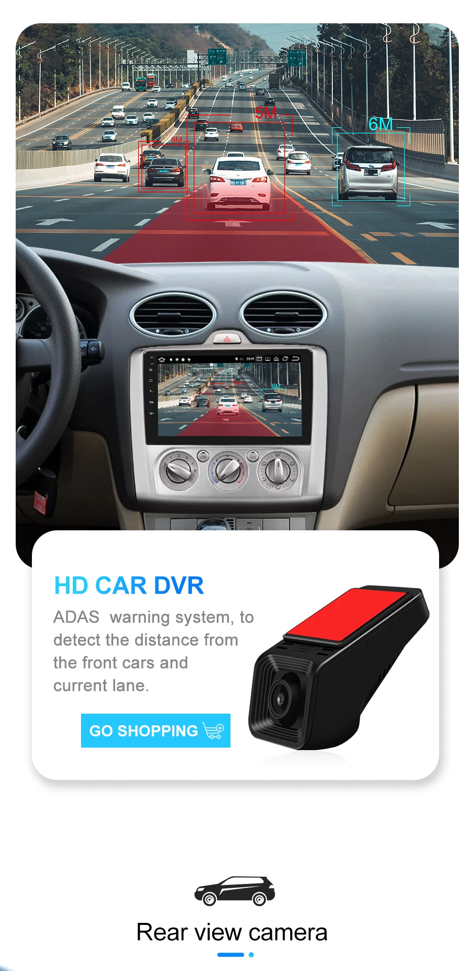 >>> Включите заднюю передачу и автоматически переключитесь на задн ее изображение на дисплее. Находите препятствия вовремя, создавай те безопасные условия для вождения (если вам нужна камера, нажмите, чтобы заказать)