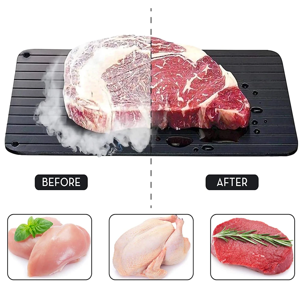 Волшебный лоток для разморозки остается прохладным на ощупь во время его использования, не требуется предварительного нагрева или горячей воды. Просто поместите замороженную еду на поднос, и она размораживается быстрее, чем при комнатной температуре