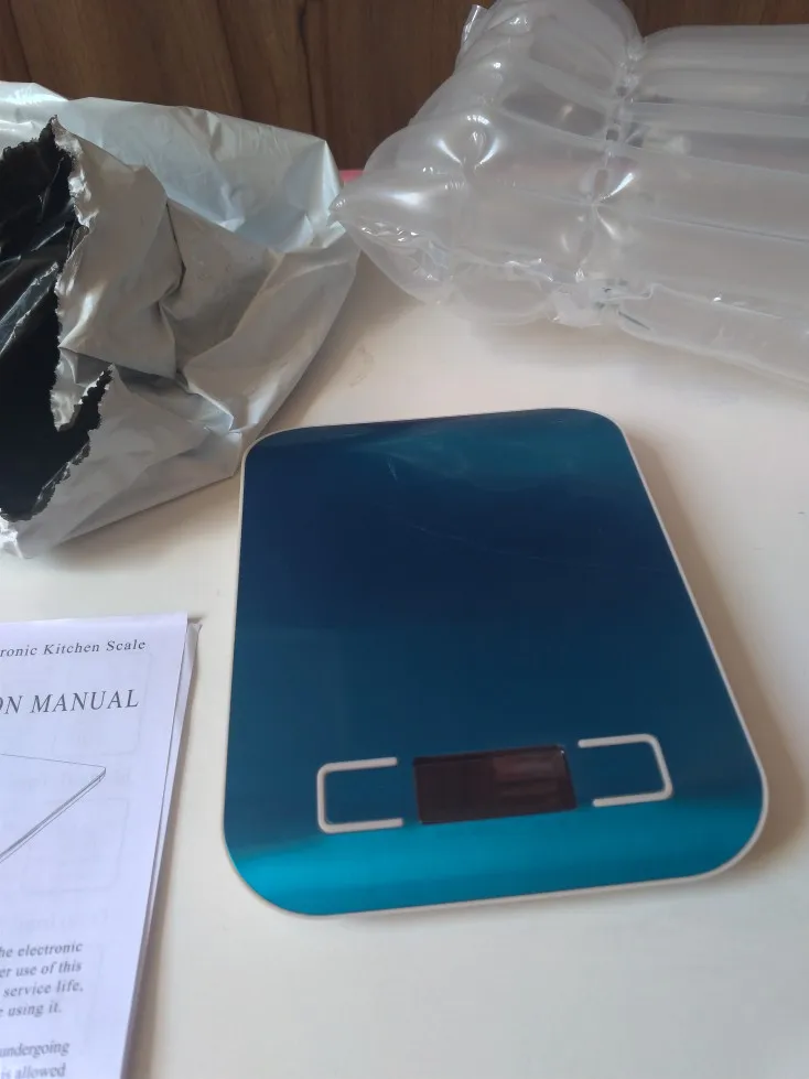 Весы до Волжского шли 12 дней, заказ был с Китая. метод доставки aliexpress standard. Упаковка, пакет с пупырками и заводская коробка. Дошло без повреждений. Корпус весов пластик, верхняя часть нержавейка покрытая защитной пленкой. Батареи в комплект не идут. Брал вариант до 5кг. Измеряют хорошо, все работает. Товаром очень доволен. Продавцу 5 звёзд ? ????