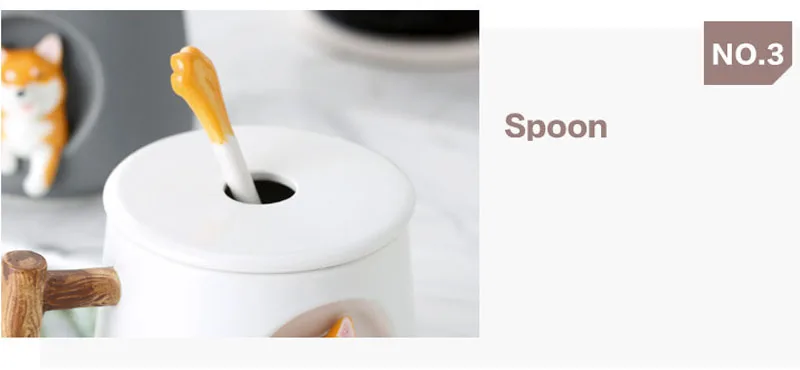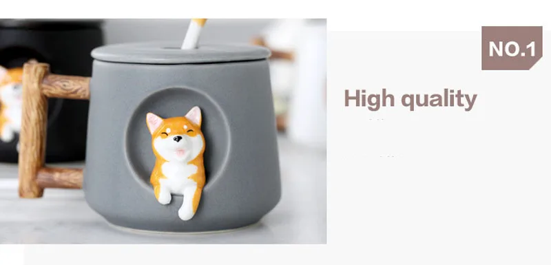 Мультяшная керамическая чашка, индивидуальная креативная чашка с крышкой и ложкой, домашняя чашка для напитков, кофейная чашка Сиба-ину, чашка