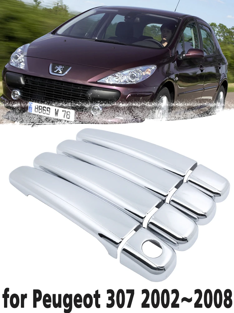 Роскошная хромированная крышка дверной ручки, защитная накладка для Peugeot 307 2002 2003 2004 2005 2006 2007 2008, автомобильный аксессуар, стикер