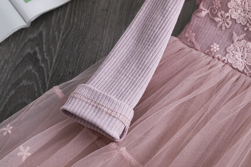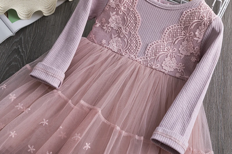 Мягкое хлопковое осеннее платье для девочек, кружевная вышивка, пра...