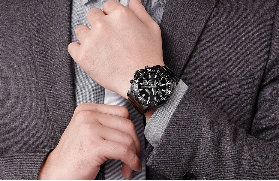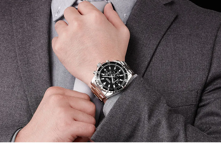 Мужские водонепроницаемые кварцевые Часы с хронографом, из нержавеющей стали