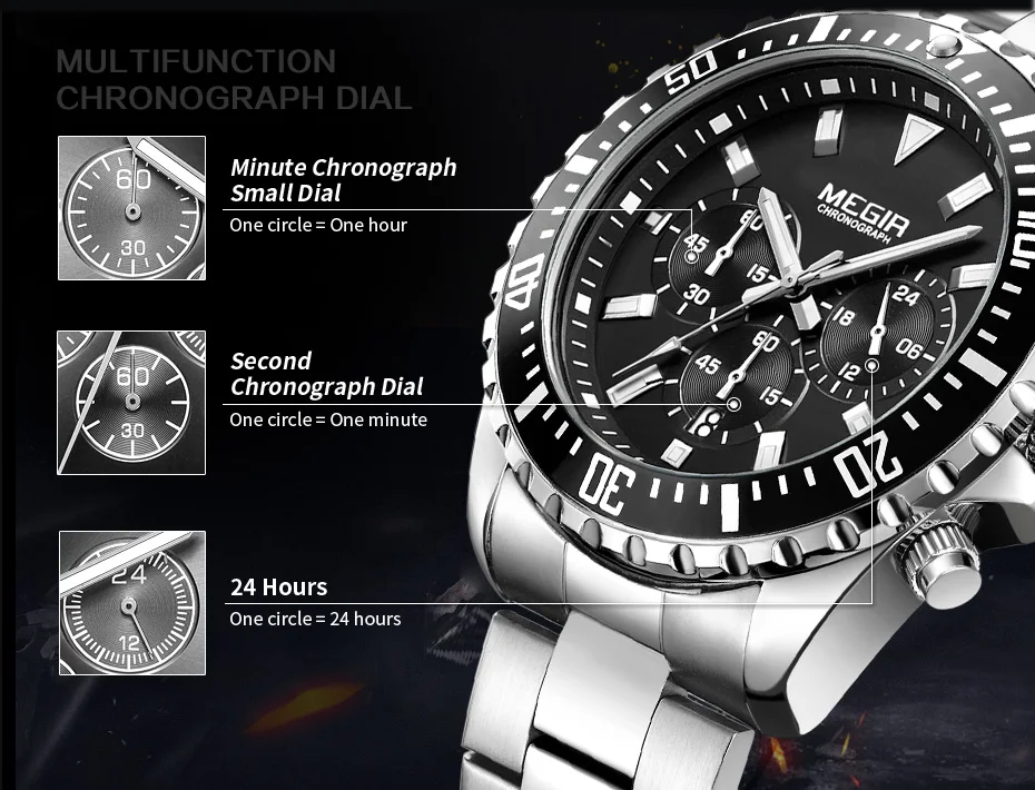 Мужские кварцевые часы MEGIR, Модные Аналоговые наручные часы с хро...