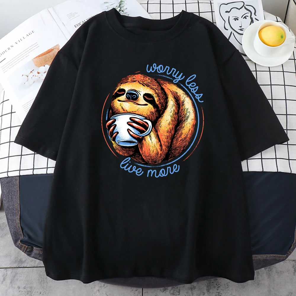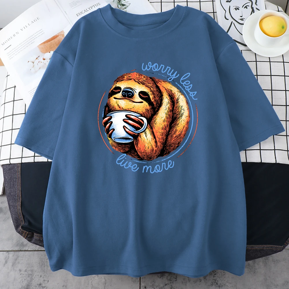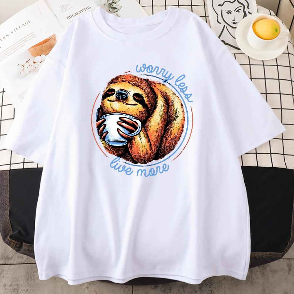 Футболка женская с надписью Ленивец На диване, тенниска с круглым в...