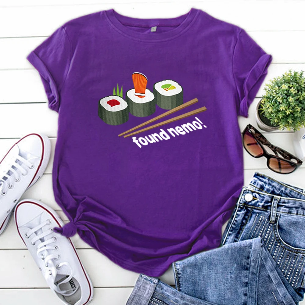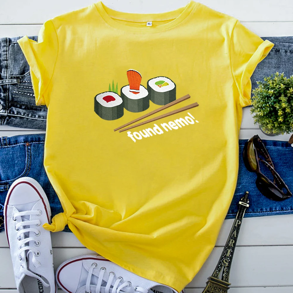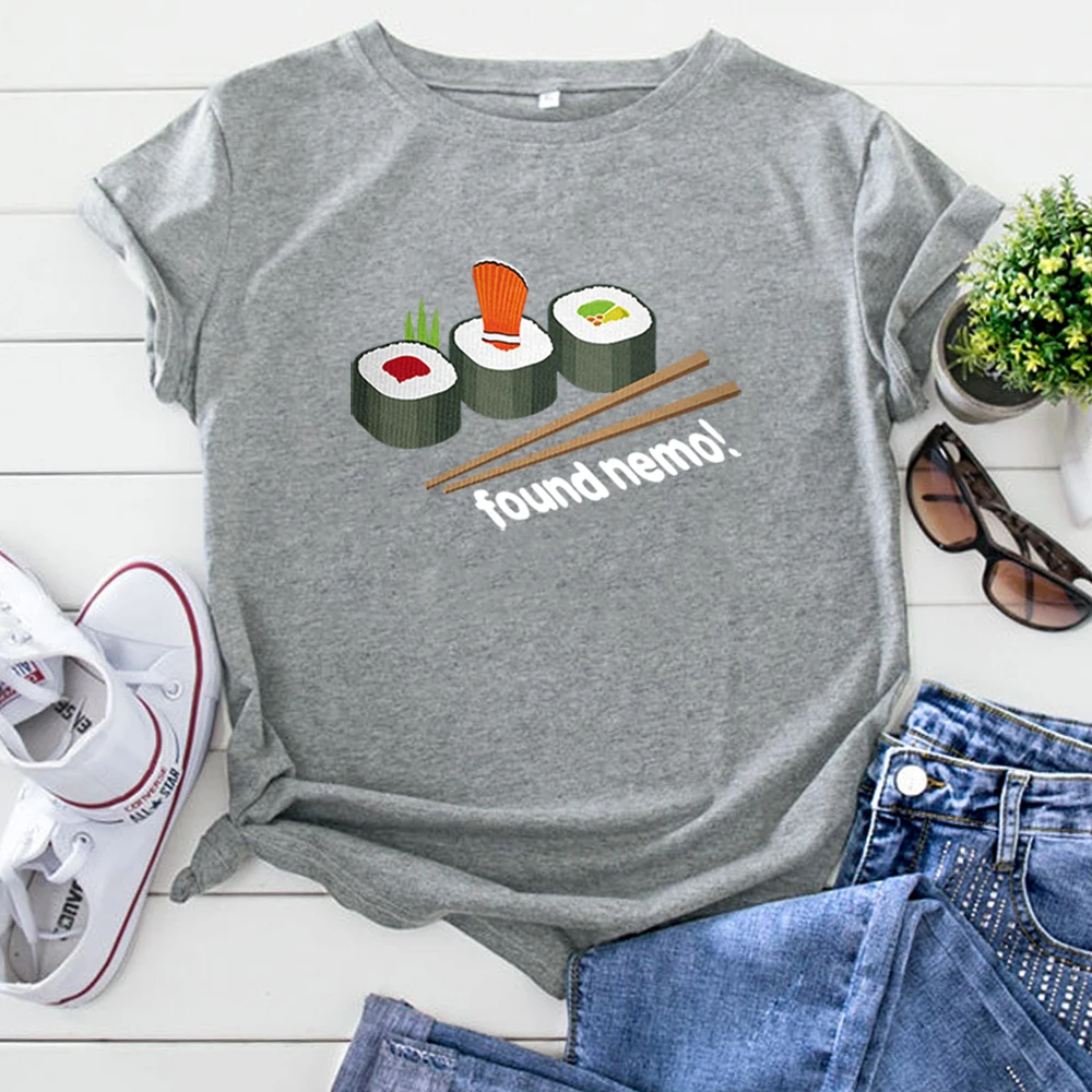 Футболка для женщин Found Nemo Japan Sushi Print Top с коротким рукавом Vintage Casual Women's T Shirt Crewneck Hip Hop T-Shirt For Women
