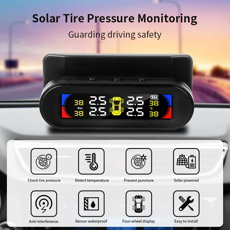 Система мониторинга давления в шинах TPMS, цветная сигнализация, большой экран, Водонепроницаемая IP67, солнечная зарядка