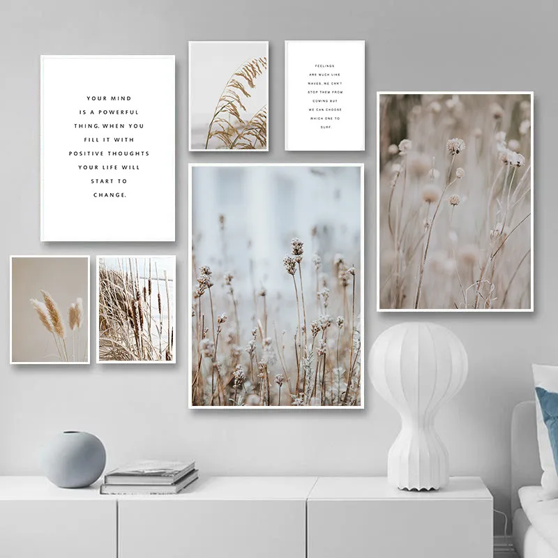 Скандинавский минималистский бежевый Рид художественный холст с принтом Одуванчик цветы плакат Настенные картинки для гостиной домашний декор TB46