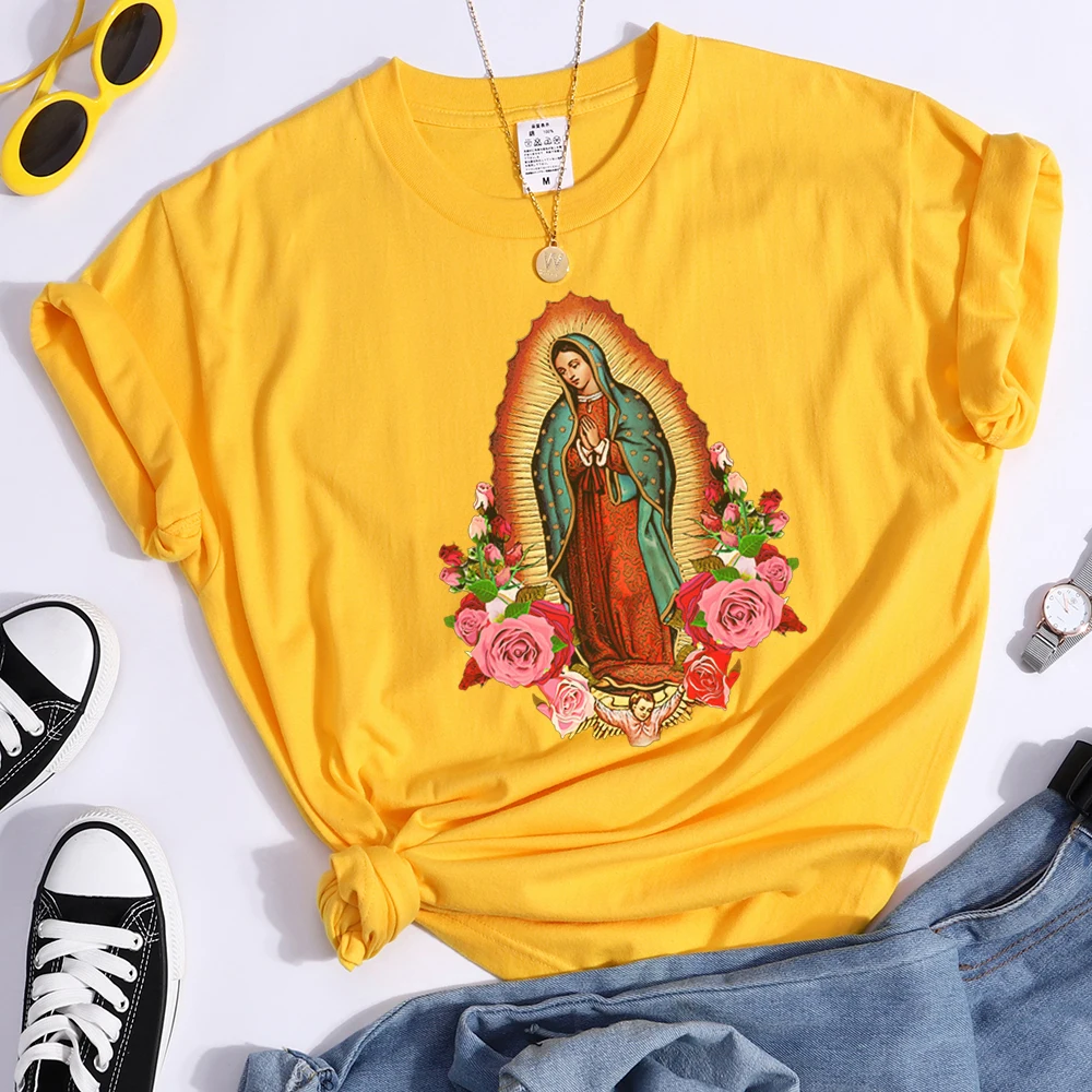 2021 женские футболки, одежда Богородицы Гуадалупе, Модные свободны...