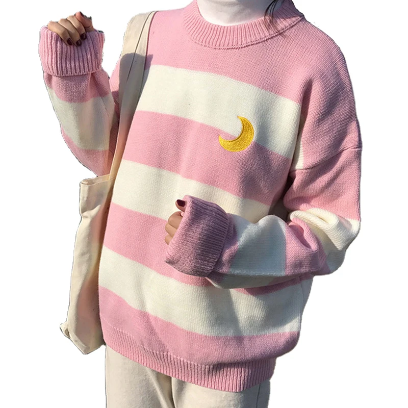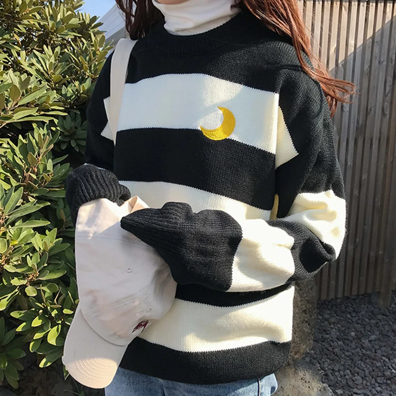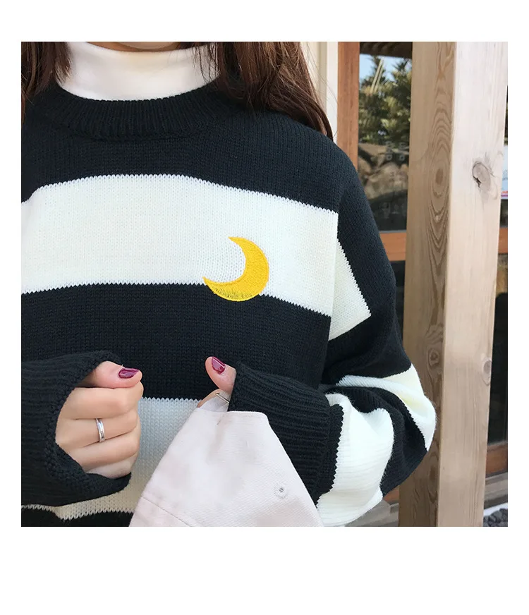 Женский вязаный пуловер Fanco, корейский пуловер в стиле колледжа, с длинными рукавами, в полоску, с вышивкой в виде Луны, зима 2020