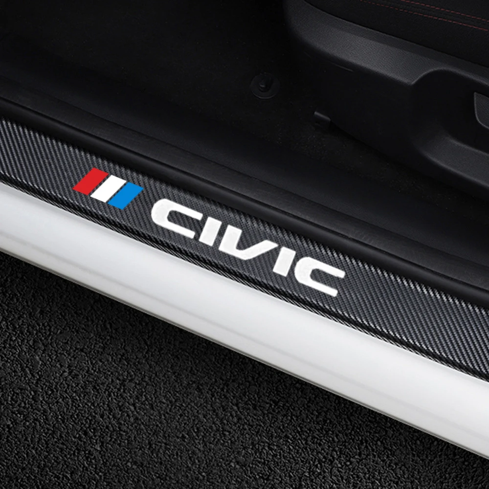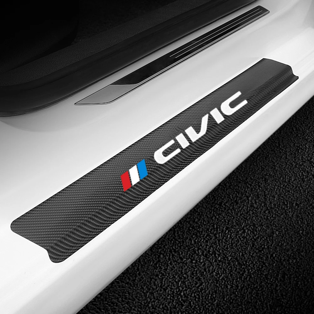 4 шт., кожаные наклейки на пороги автомобиля, из углеродного волокна, для Honda Civic 10, 8, тип R 2008, 2012, 2018, 2006