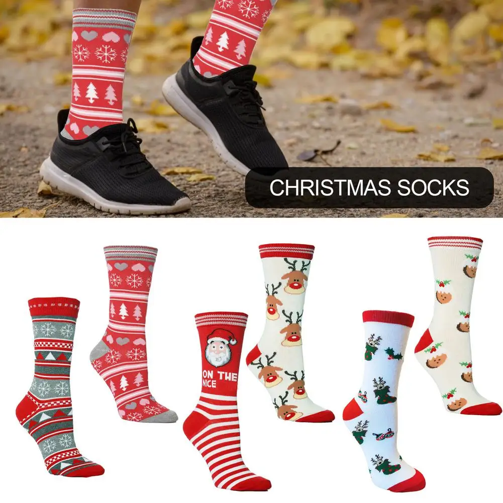 Носки женские рождественские с рисунком Санта-Клауса, лося, 1 пара