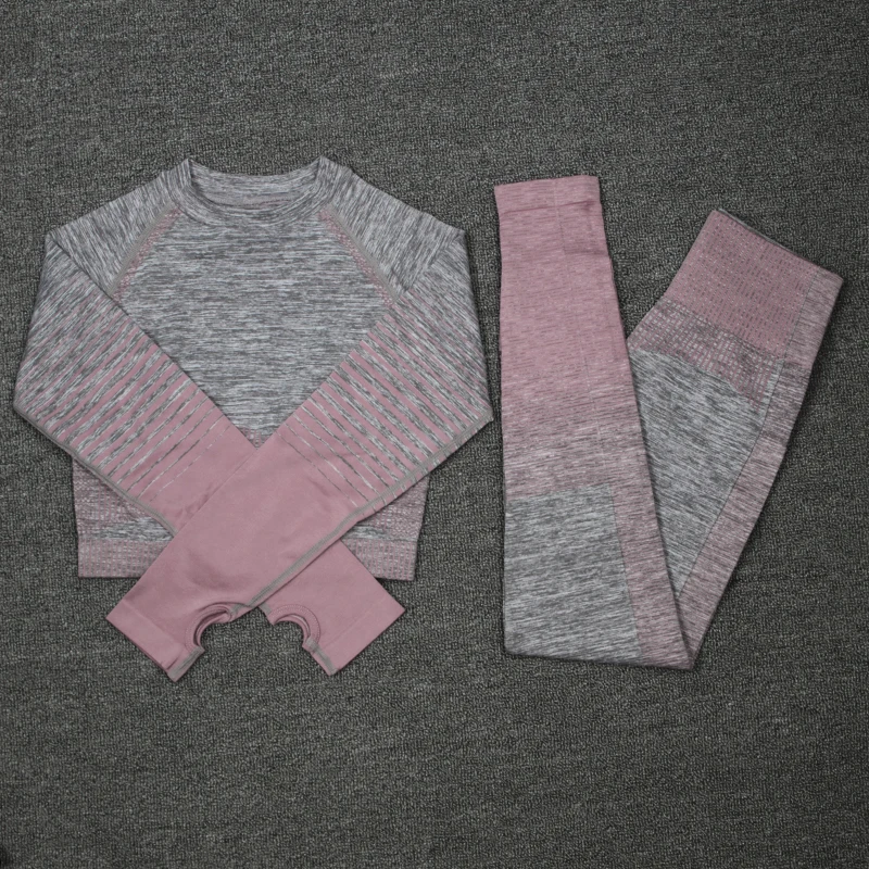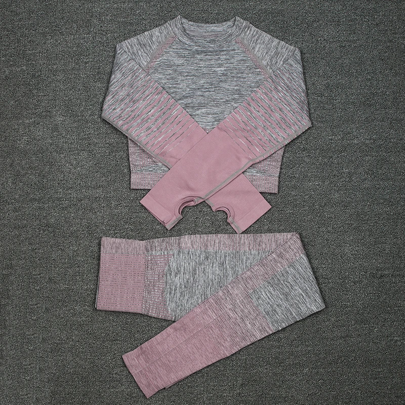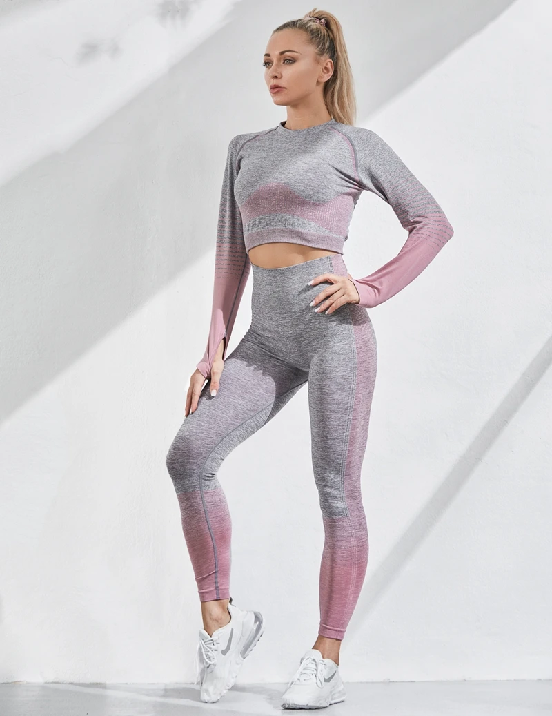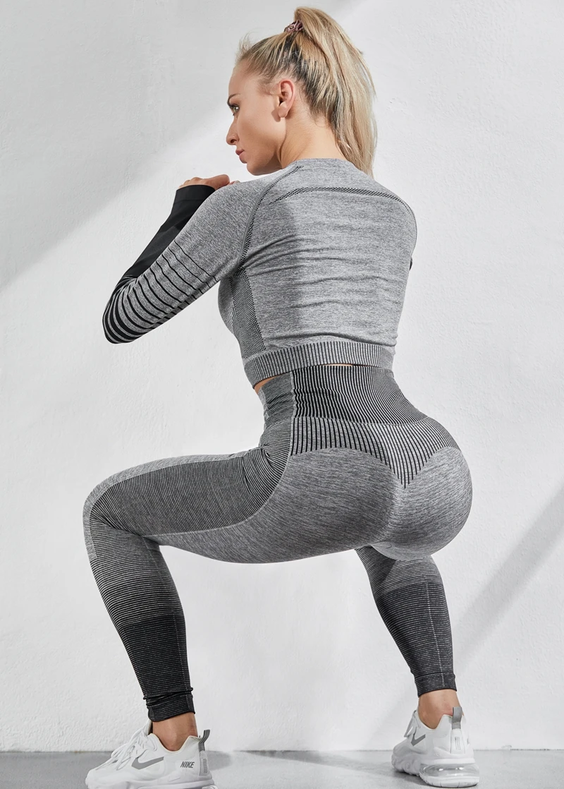 Женский комплект для йоги NORMOV, комплект из 2 предметов, Топ с длинным рукавом и высокой талией, спортивные Леггинсы, спортивный костюм для тренажерного зала, костюм для фитнеса