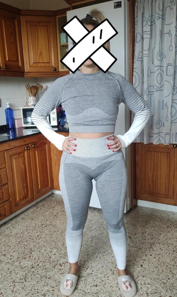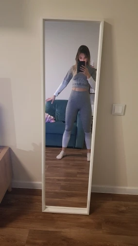 Zestaw ubrań w rozmiarze XL jest idealny na rozmiar 42/44 natomiast już na 40 może być nieco za duży. Spodnie są idealne do ćwiczeń wymagających rozciągania. Bluzka lekko podwija się do góry natomiast nie ma to żadnego wpływu na komfort ćwiczenia. Nie zauważyłam wad w szyciu. Przesyłkę otrzymałam w dwa tygodnie i od czasu nadejścia komplet jest regularnie używany.