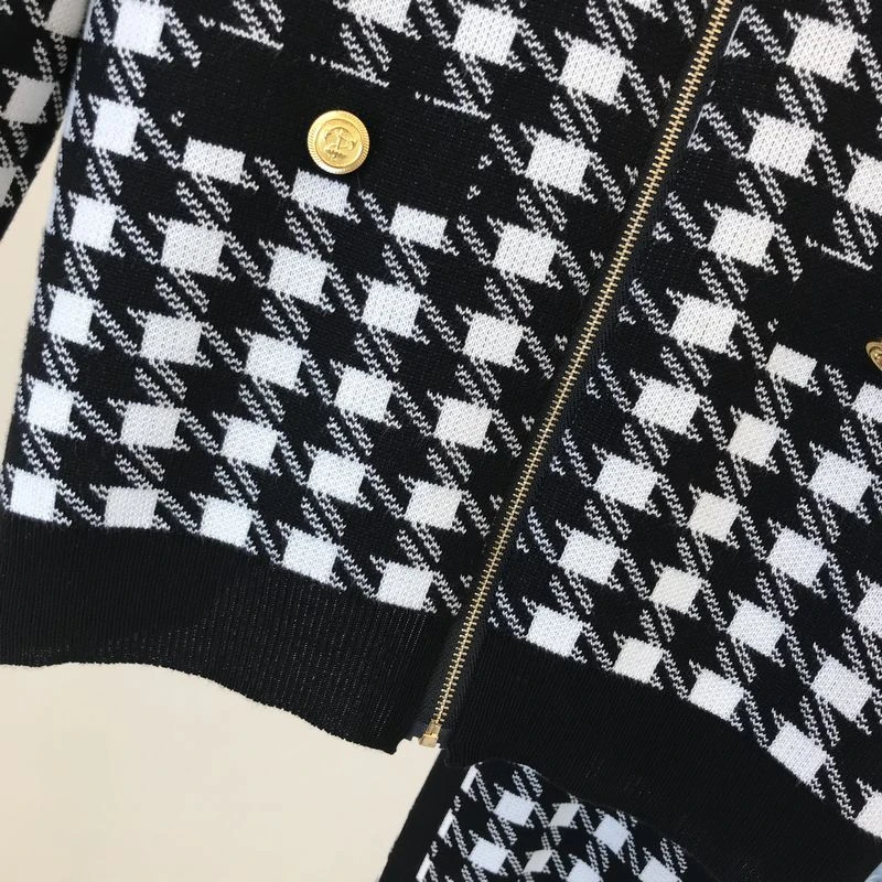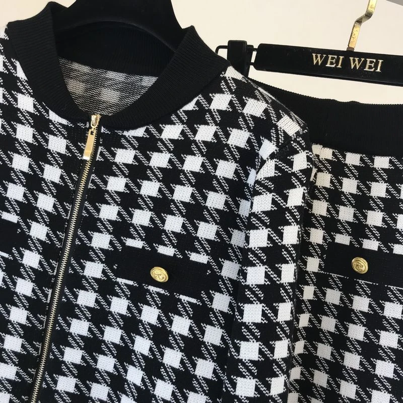 Вязаный спортивный костюм, осень 2020, женский кардиган на молнии, пальто + клетчатые брюки, костюмы, вязаные толстовки, костюм, Хаундстут, комплект из 2 предметов