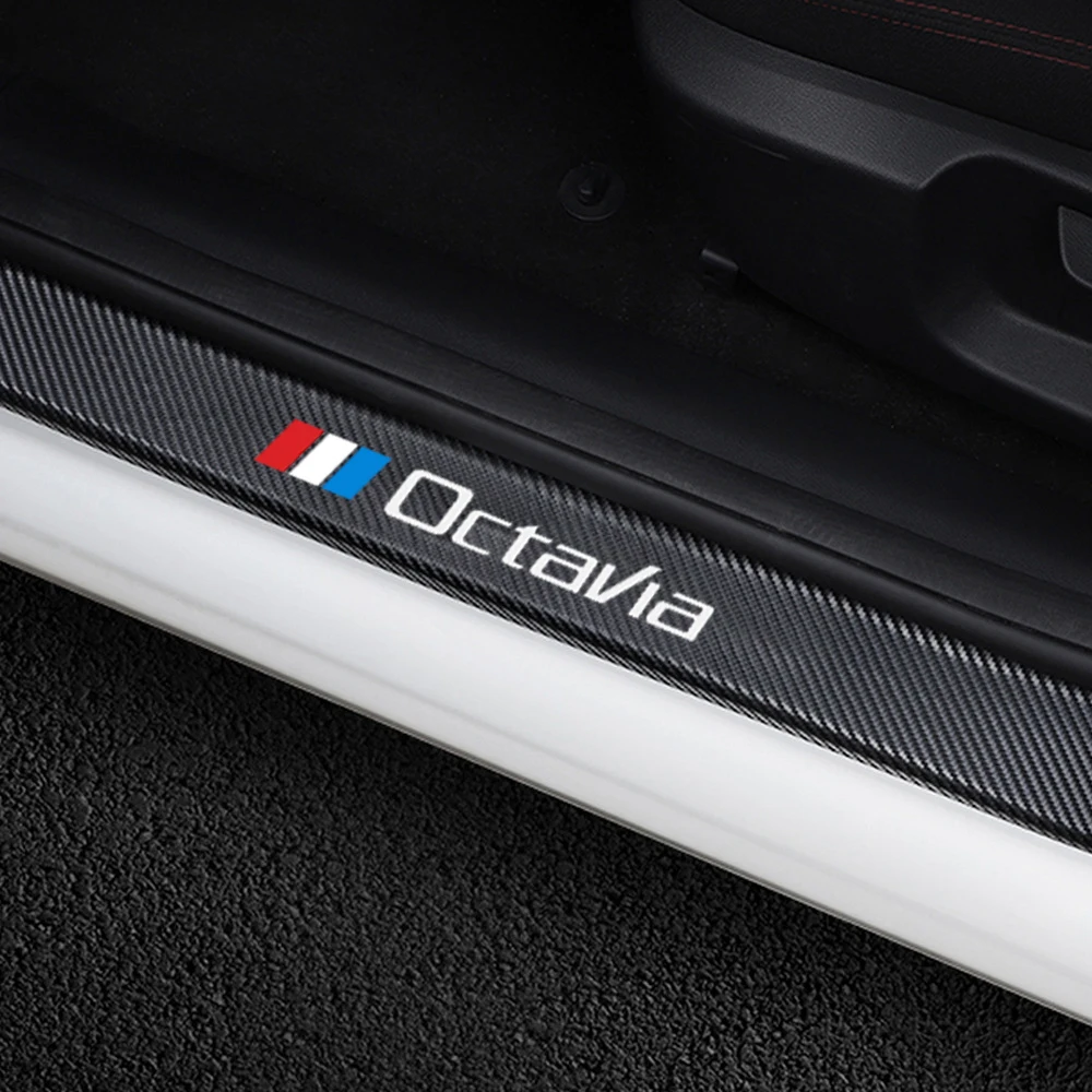 Аксессуары для Skoda Octavia 2 3 MK2 MK3 A4 A5 A7 VRS RS 4 шт. защитная пленка из углеродного волокна для порога автомобиля защитные кожаные виниловые наклейки