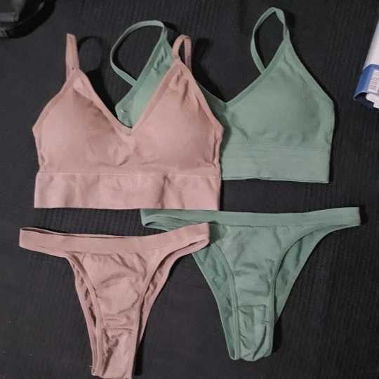 Очень удобные комплекты! Заказала себе и подруге. Цвета на фото немного искажаются, у продавца ближе к реальности. Буду носить, как повседневное белье, но также оно подойдёт для тренировки