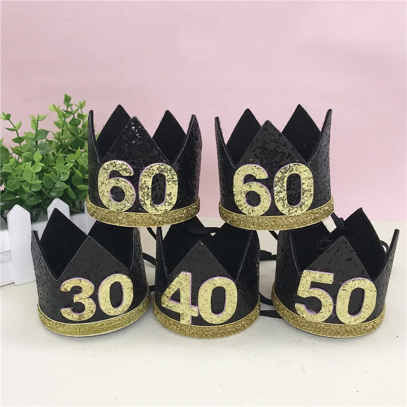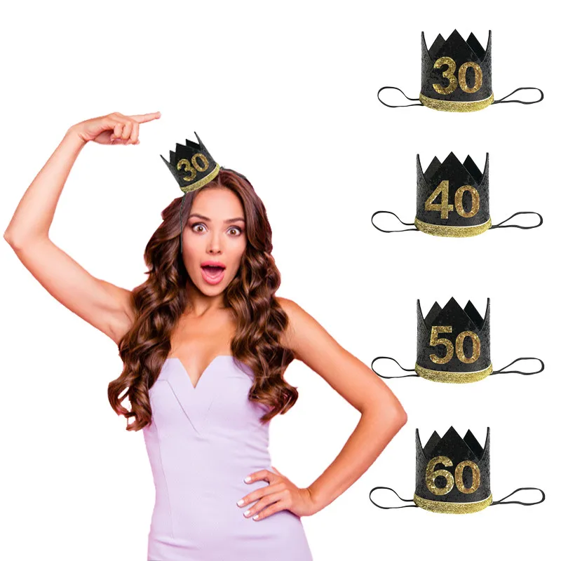 JQSYRISE 1 шт. цвета: черный, золотистый 30 40 50 60 лет повязка на голову с короной на день рождения взрослых День рождения средства по уходу за волосами шляпа Юбилей расходные материалы