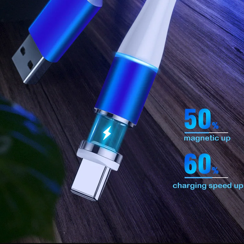 Магнитный кабель 3A для быстрой зарядки, светящийся кабель для пере...