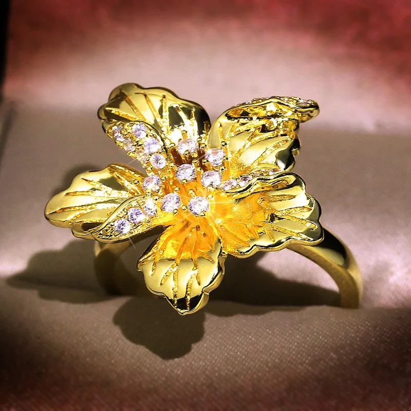 Кольцо в стиле ретро с изображением лилии, искусственное кольцо с и...