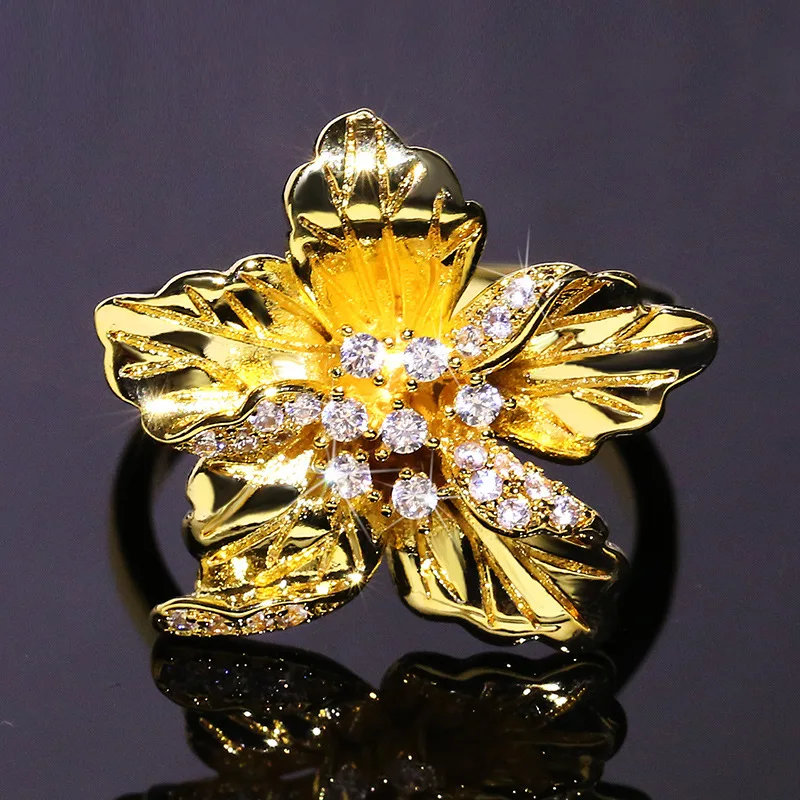 Милое обручальное кольцо с листьями, женское круглое кольцо с цирко...