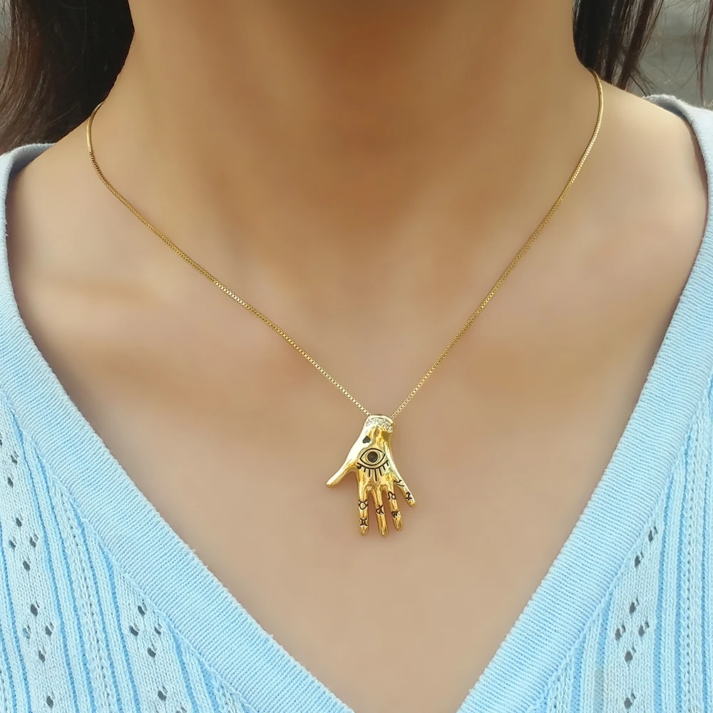 Женская цепочка от сглаза из фианита, ожерелье золотистого цвета с кубическим цирконием, Подарочная бижутерия, Шейное колье с подвеской