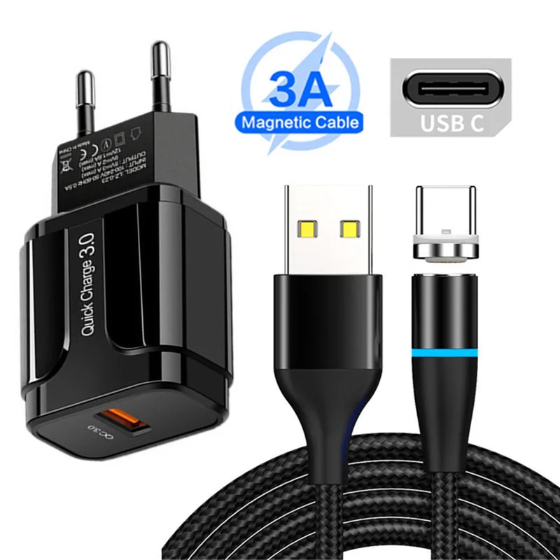 Зарядное устройство QC 3,0 с портом USB Type-C, магнитное, 3 А, кабель Micro USB для быстрой зарядки Xiaomi POCO X3, M3, Mi 10 Lite, Redmi 3s, 4A, 5, Note 8, 9 Pro