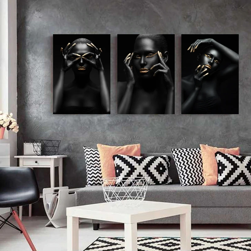 Черно-Золотая Обнаженная африканская художественная женщина в скандинавском стиле живопись на холсте плакаты и принты Скандинавская Настенная картина для гостиной