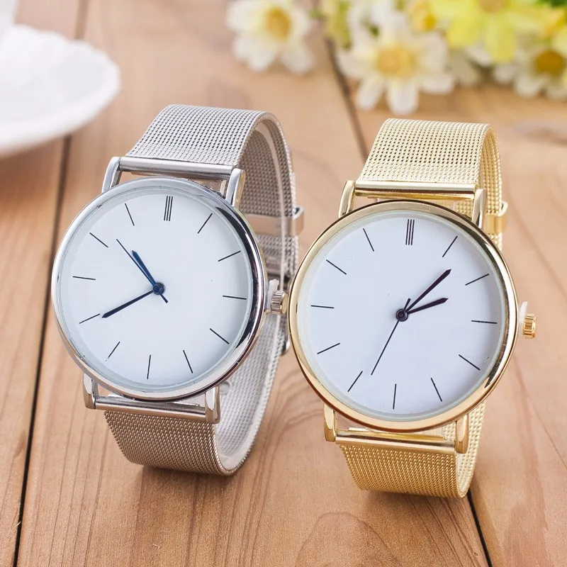 Часы наручные унисекс, модные женские серебристые, с сетчатым браслетом из нержавеющей стали