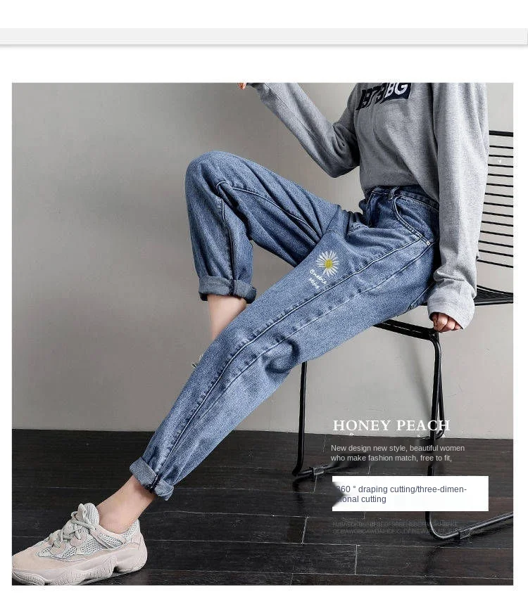Женские новые джинсы с завышенной талией, корейские свободные шаровары, Студенческие Брюки с морковкой, старые брюки с эластичным поясом, джинсы для мам