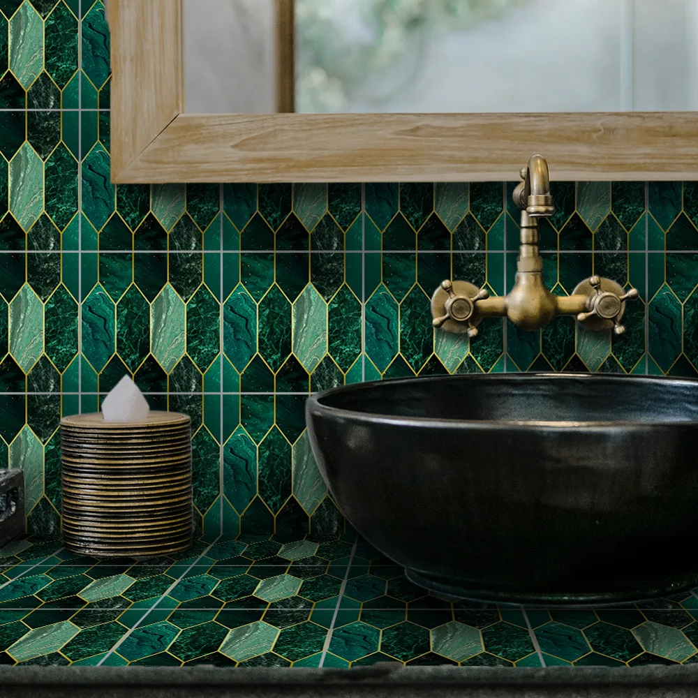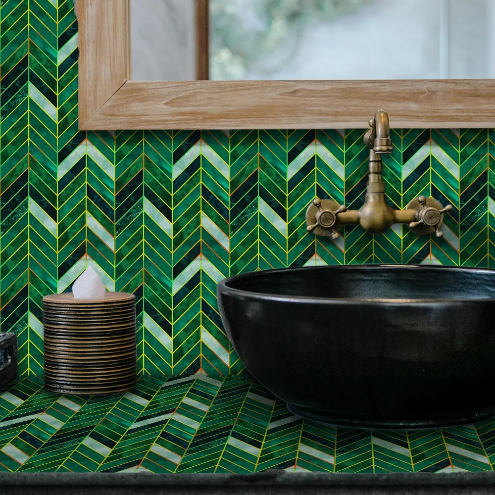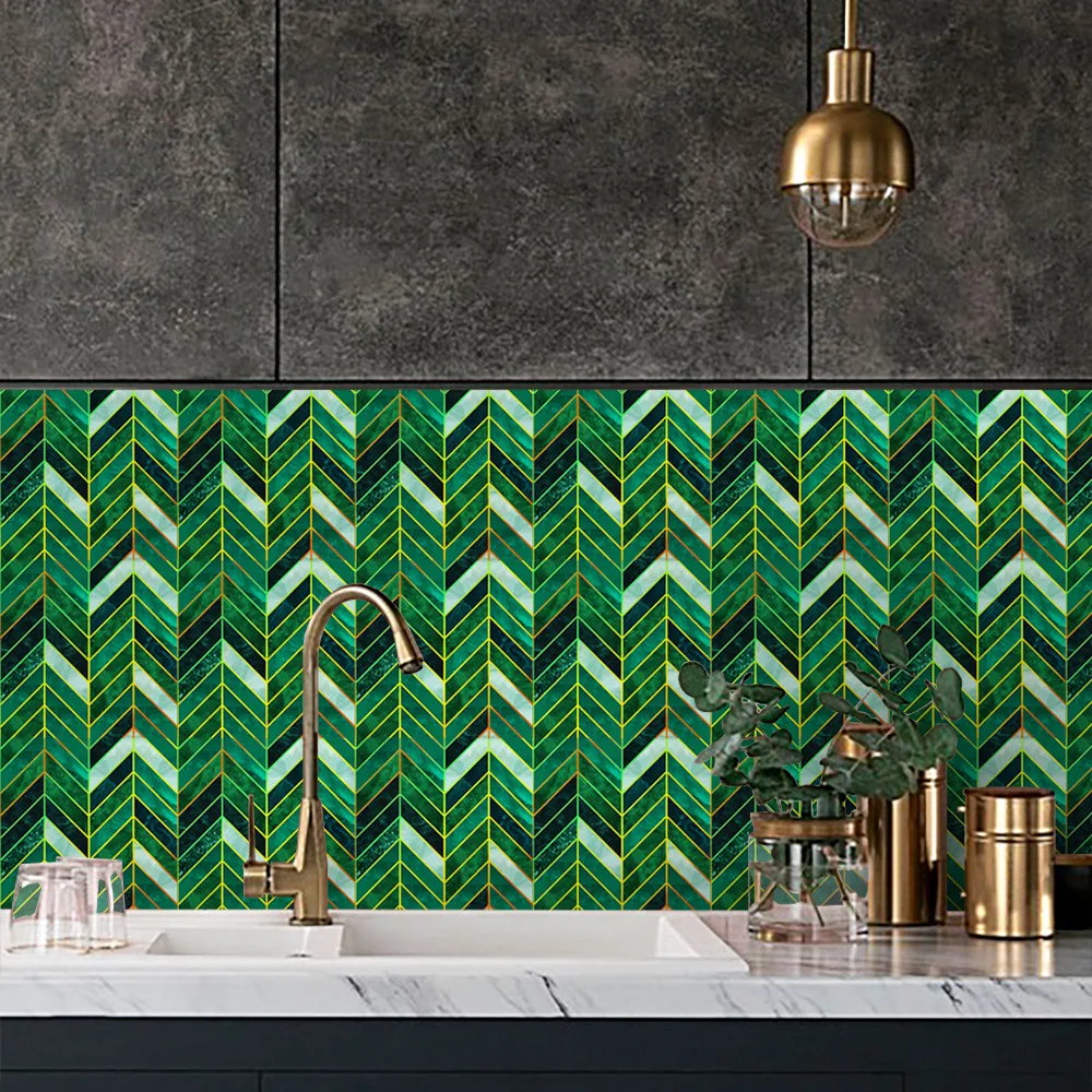 Наклейка Funlife на стену, для гостиной, кухни, ванной, туалета, бара, современный роскошный домашний декор, клейкая плитка из ПВХ с зеленой позолотой