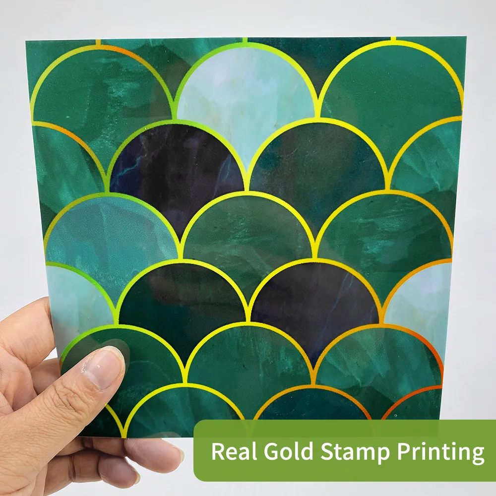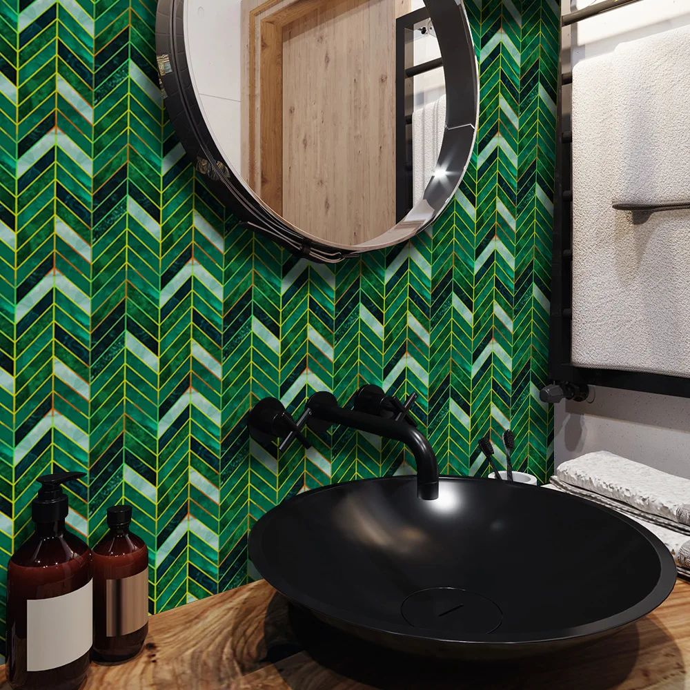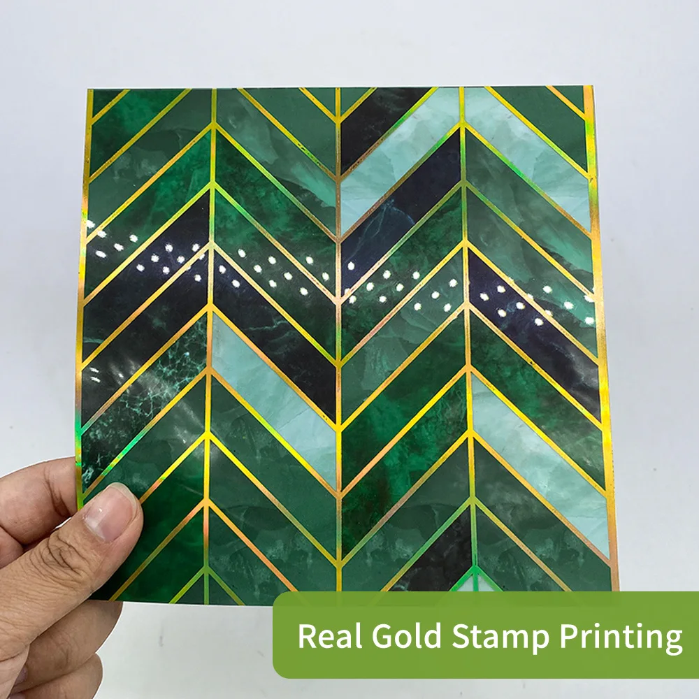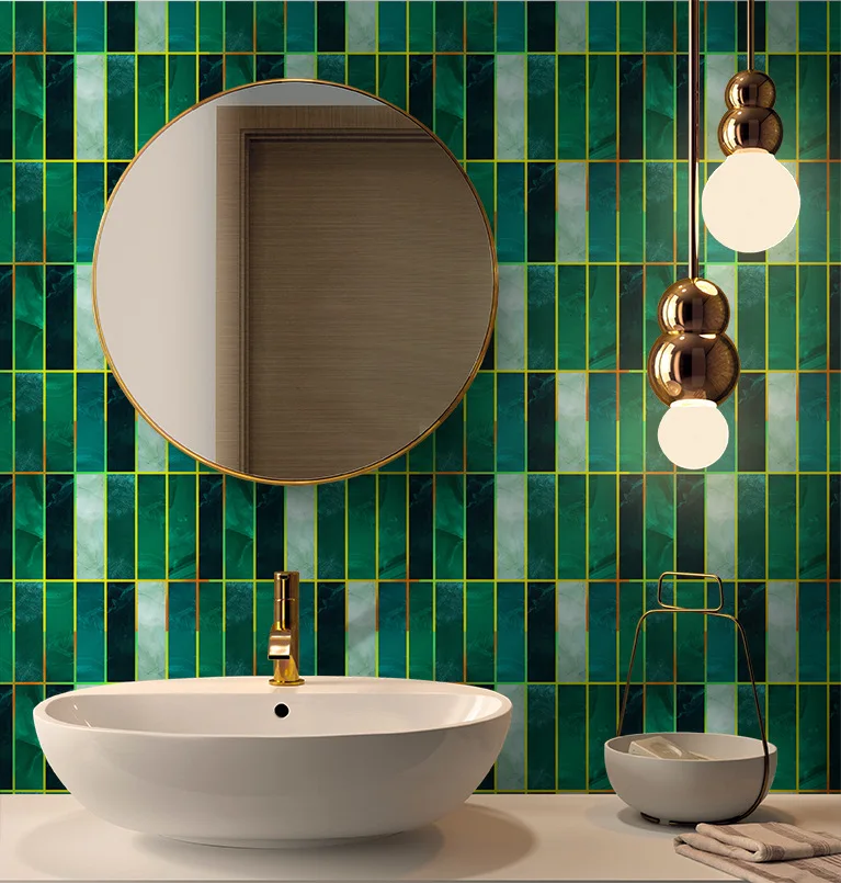 Наклейка Funlife на стену, для гостиной, кухни, ванной, туалета, бара, современный роскошный домашний декор, клейкая плитка из ПВХ с зеленой позолотой