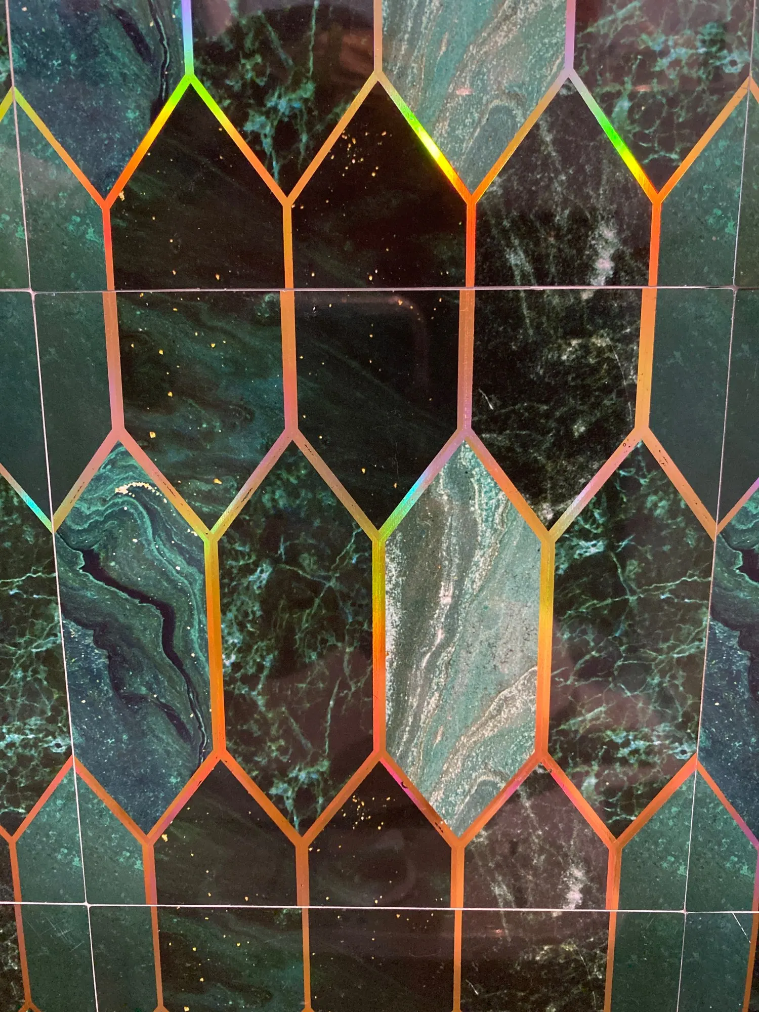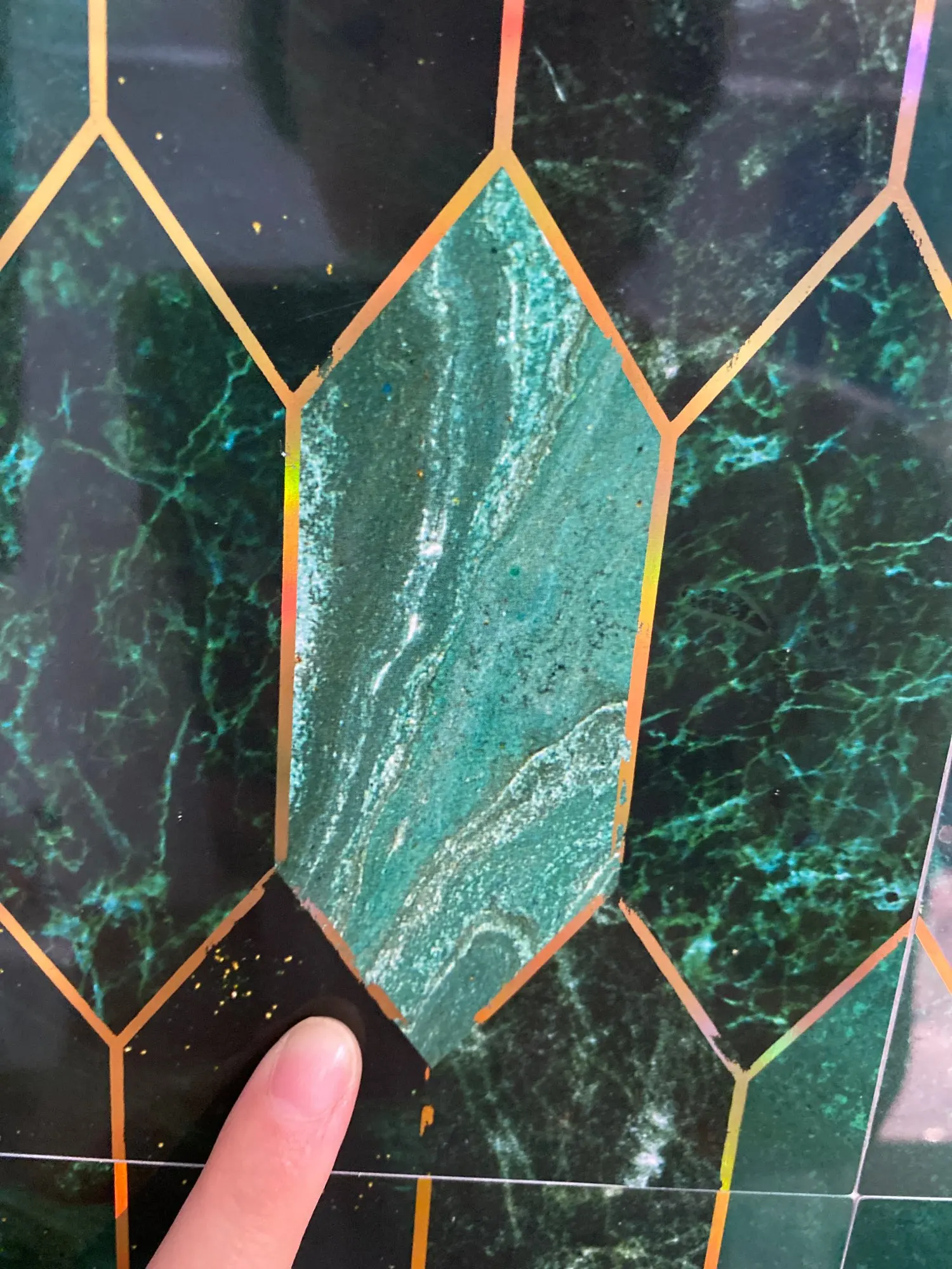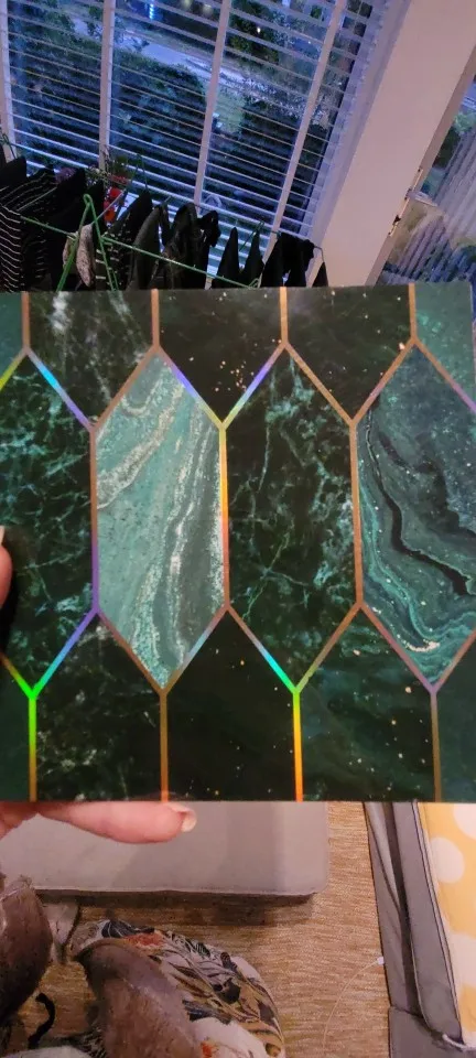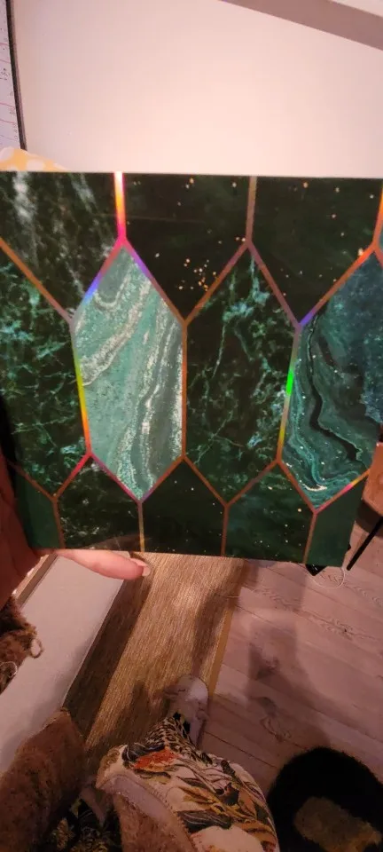 Некоторые плитки были неправильного размера, некоторые из них были выключены, и некоторые из них были отрезаны, когда они прибыли. Однако изображение в Интернете почти точно отображает плитки, если они были идеальными.