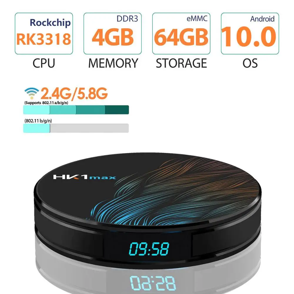 5 шт. в партии HK1MAX Android 10,0 Смарт ТВ-бокс 4K 1080P четырехъядерный HK1 MAX Rockchip 2,45G WIFI Full HD медиаплеер