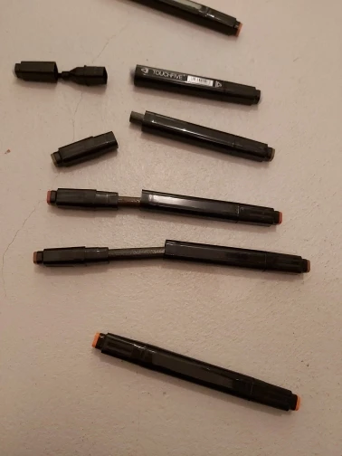 Ручки красивые. Плюс продавец сделал мне очень хорошие подарки: Пакет для хранения, две точилки, две Сланцевые маркеры, две белые ручки и четыре прецизионных ручки и две карандаши. Чехол не жесткий и падает вниз по весу ручек. Более легкие ручки имеют меньшую емкость для покрытия поверхностей, но в целом они очень хороши. Большая упаковка включает в себя много оттенков серого, которые могут мне не нужны, но в общем, я так рад. Доставка была быстрой, и товары были очень хорошо упакованы