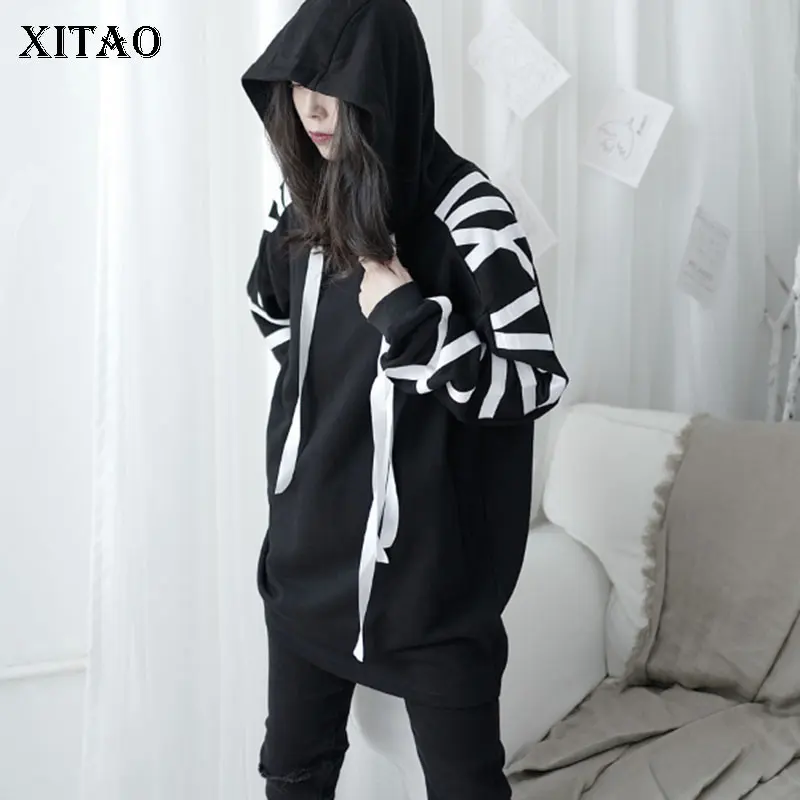Худи XITAO женское в стиле пэчворк, повседневное модное универсальное худи с капюшоном и воротником, модель DZL2243, осень 2020