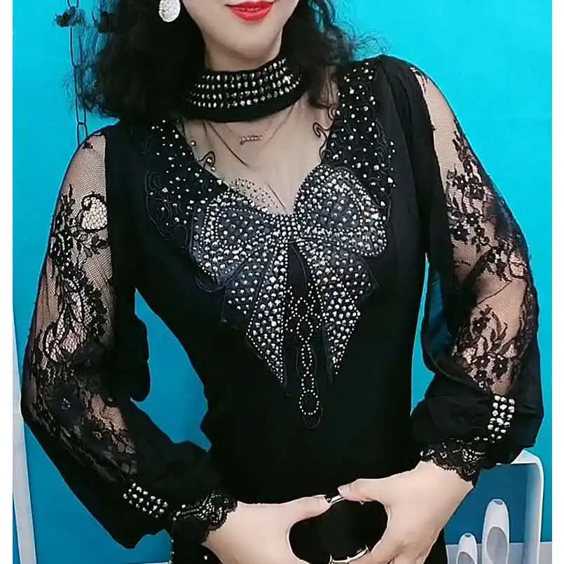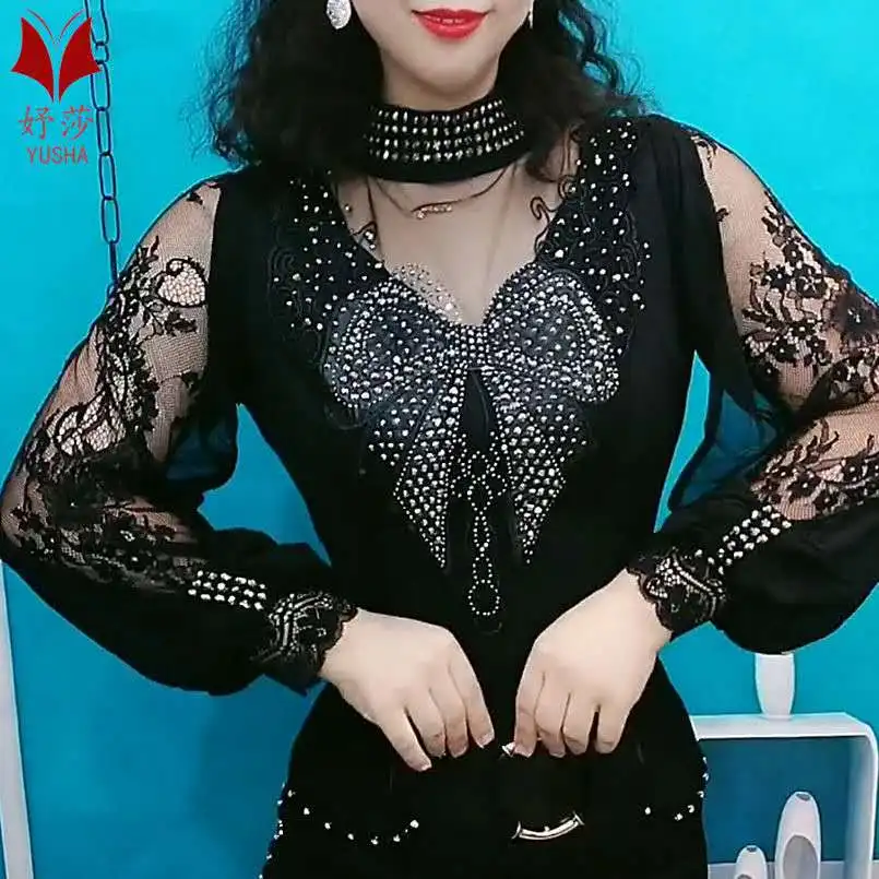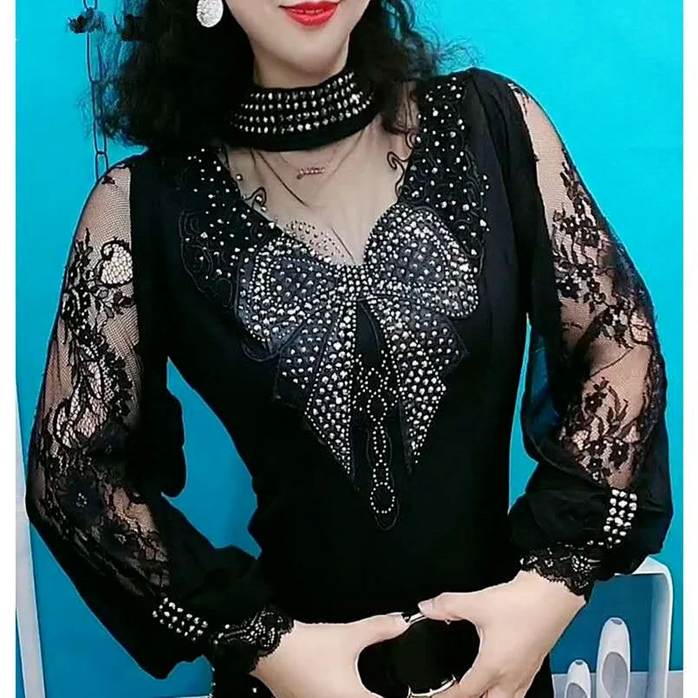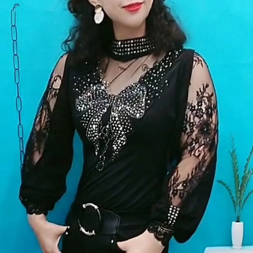 Женская Кружевная футболка, винтажная Готическая рубашка с рукавами-фонариками и высоким воротником, осенняя женская футболка в стиле пэчворк, гранж, топы в эстетике