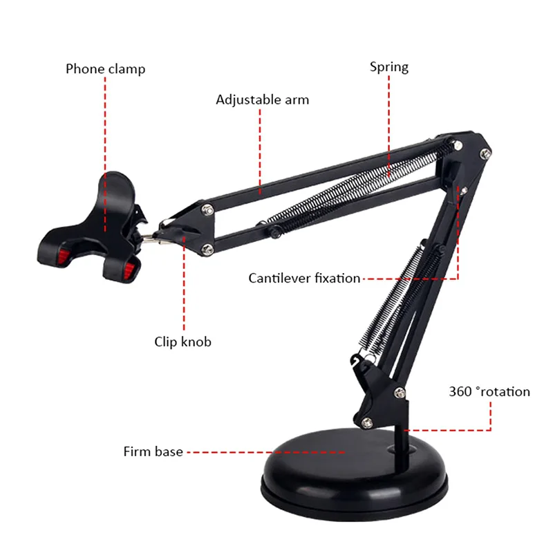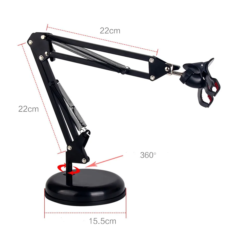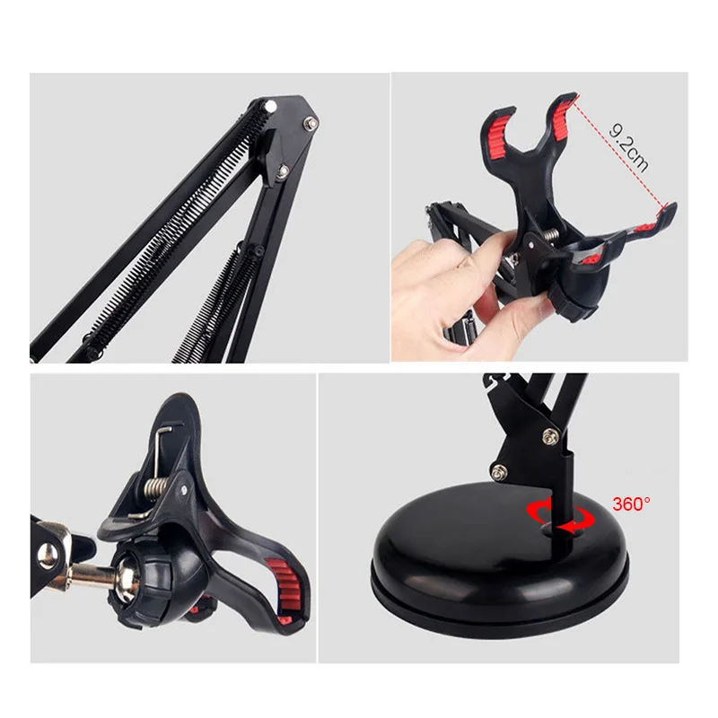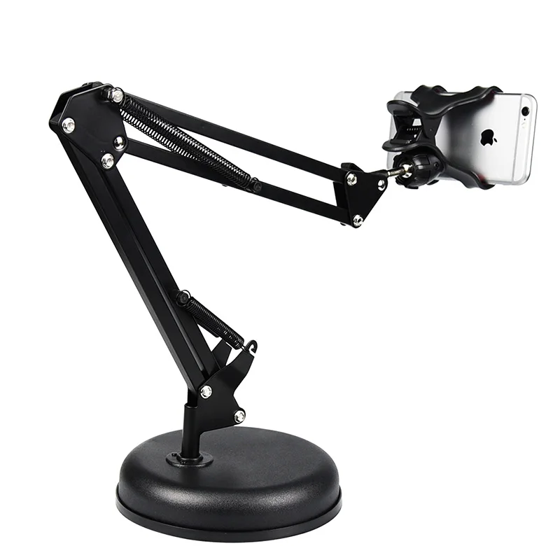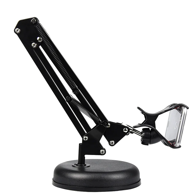 Складной держатель для сотового телефона, Настольный кронштейн, регулируемый сверхпрочный длинный зажим, металлическое основание, стабильный замок на шарнире