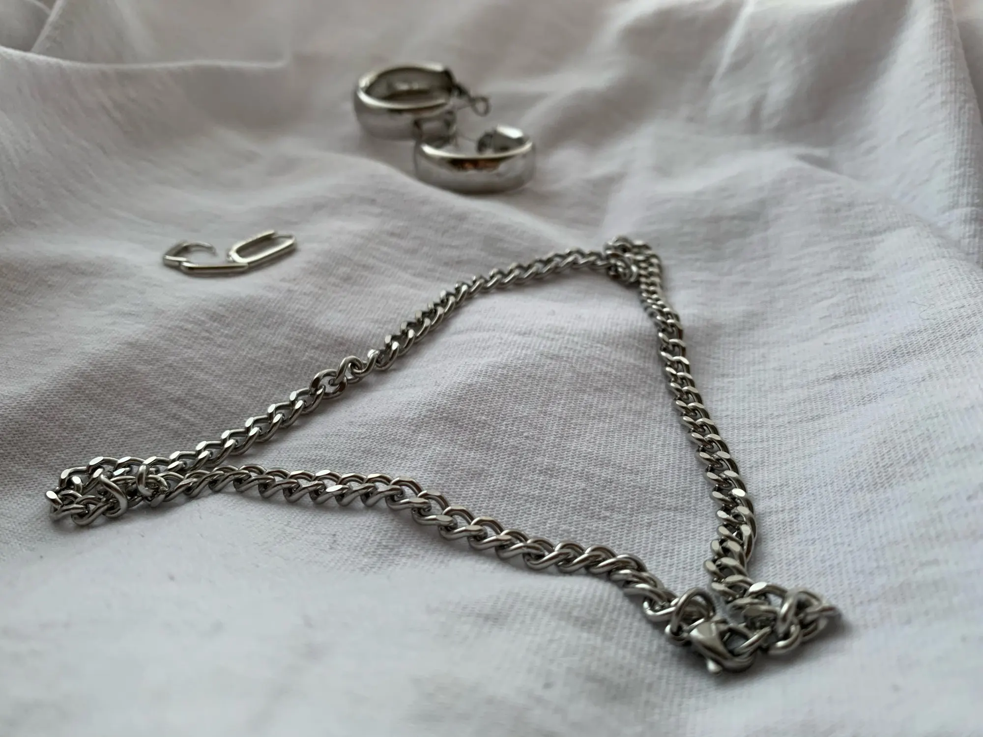 похоже на серебро, есть проба.заказ дошёл быстро. удобная застёжка. очень лёгкие.