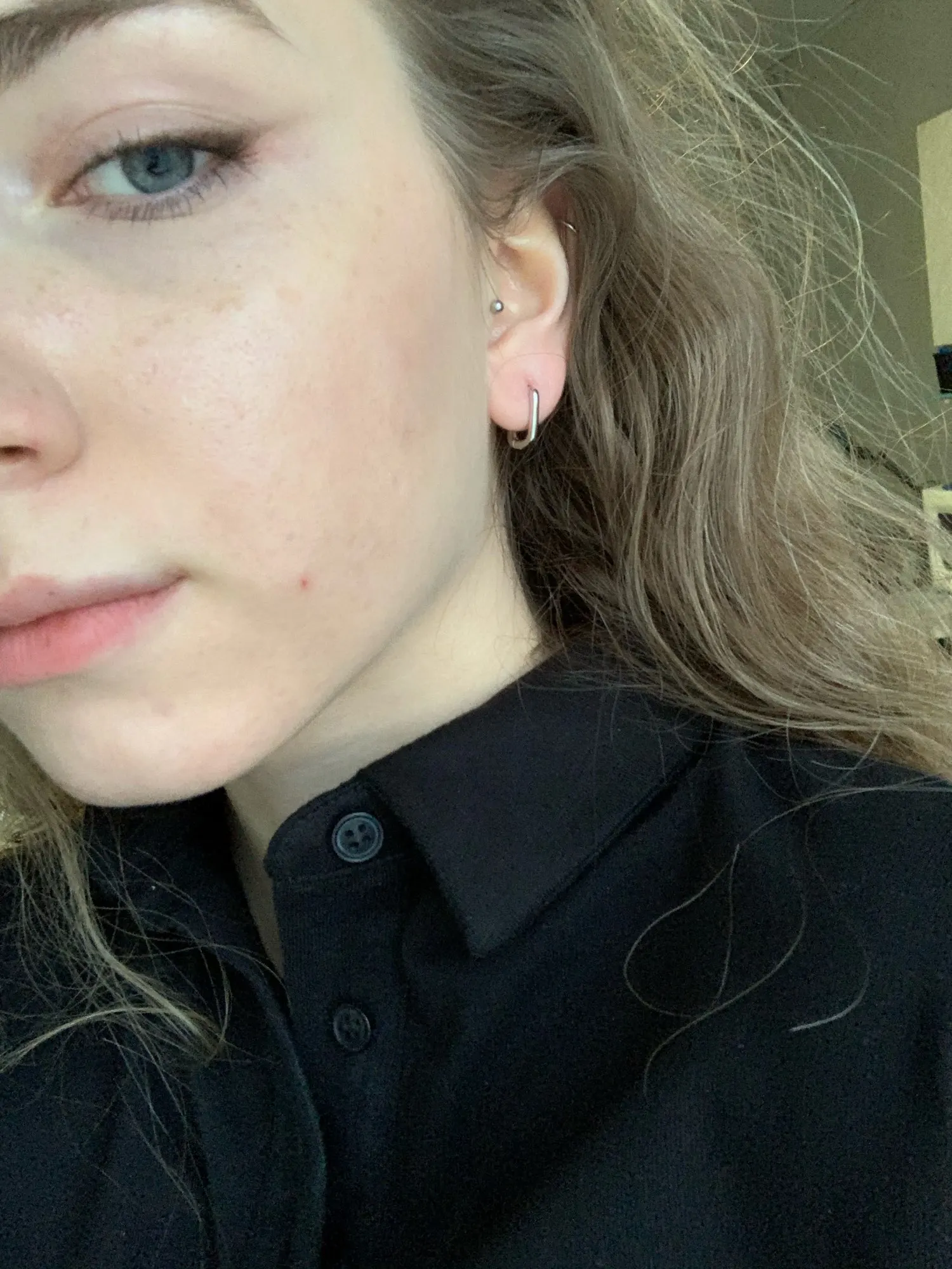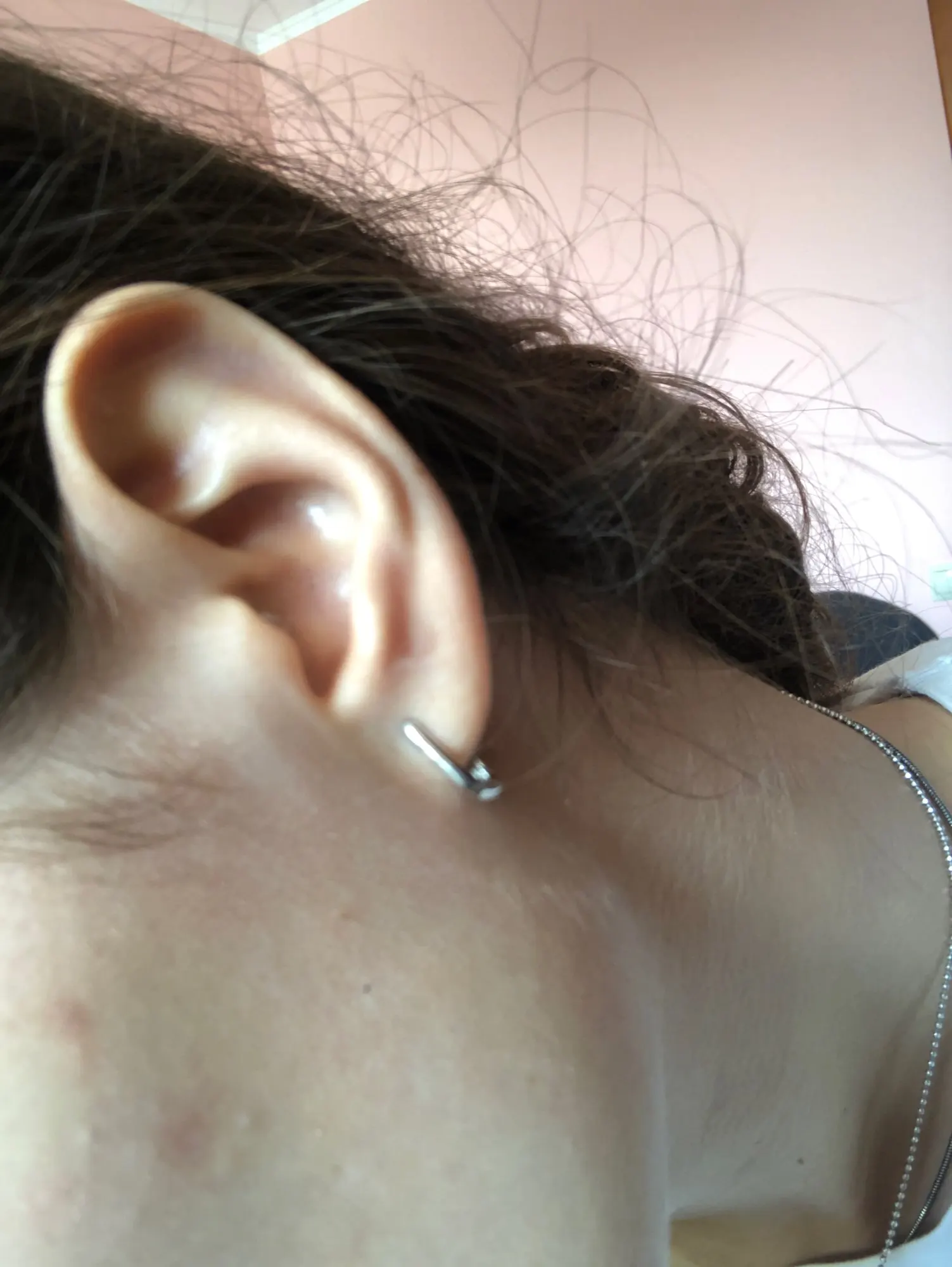 одна серёжка как будто в клее испачкана была в месте крепления, ношу неделю , уши не болят , мне очень нравится как они смотрятся
