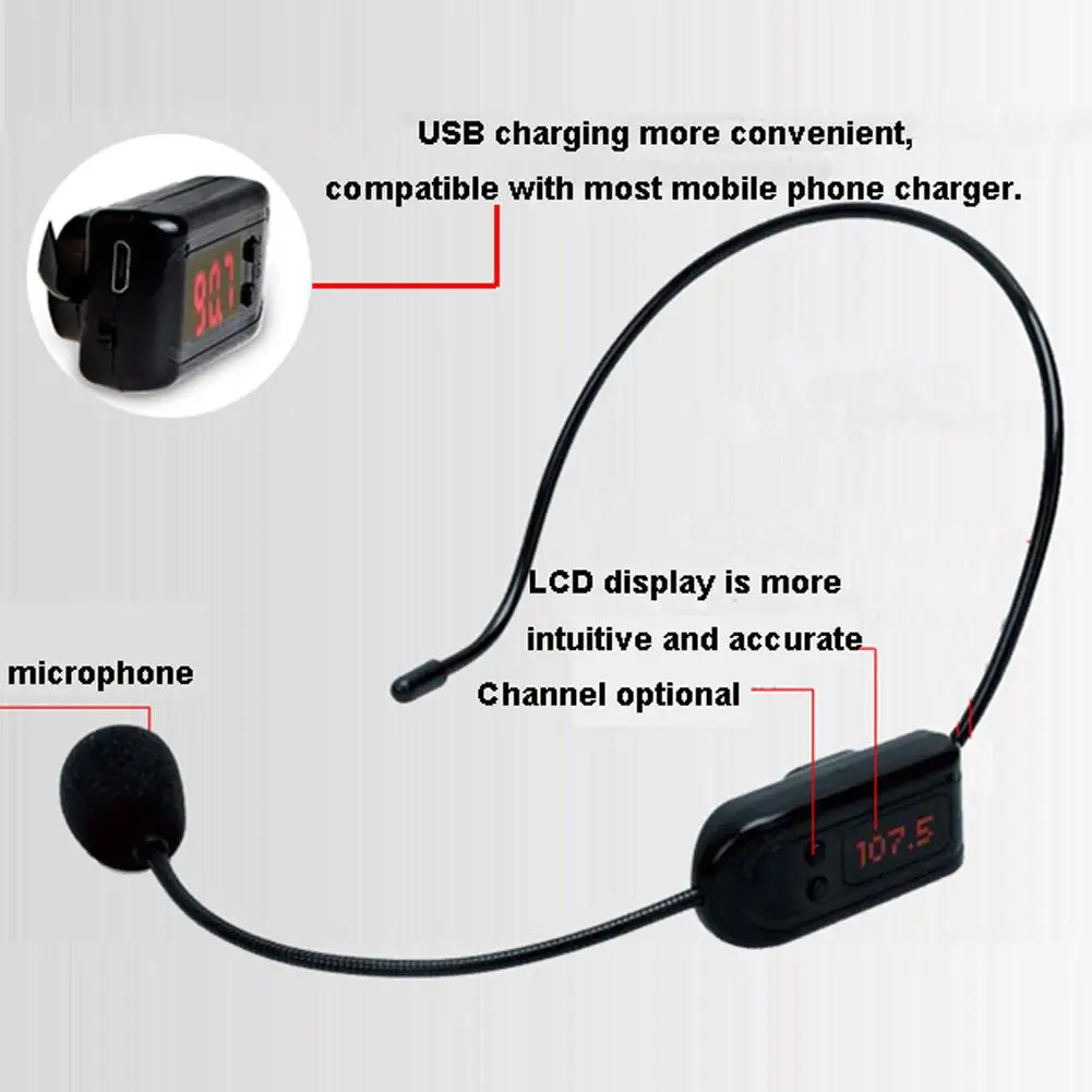 Беспроводной микрофон, гарнитура с FM-радио, микрофон для громкоговорителей, 87,0-108 МГц, для обучения гиду, встреч и лекций
